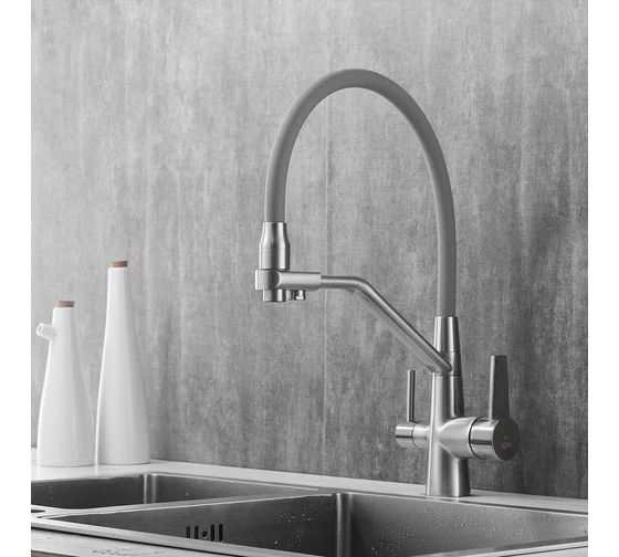 Элегантный дизайн в сочетании с функционалом сделают вашу кухню комфортнее. Излив длиной почти полметра легко достает до любого уголка мойки, а плавный поворот обеспечивает свободу движения во время мытья посуды.
