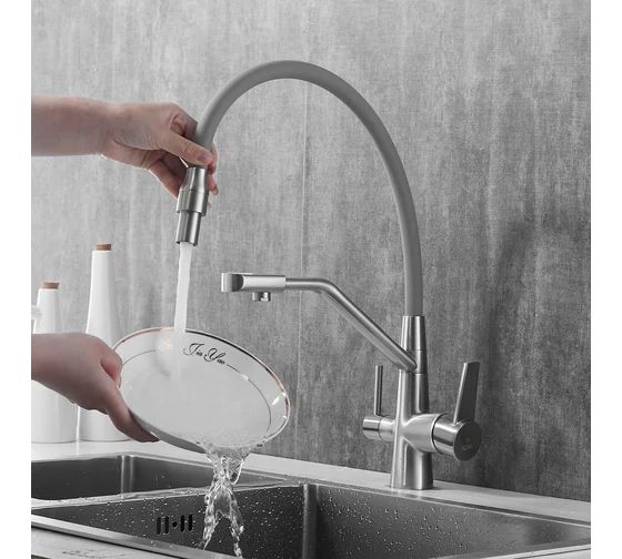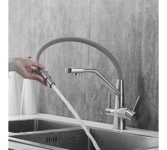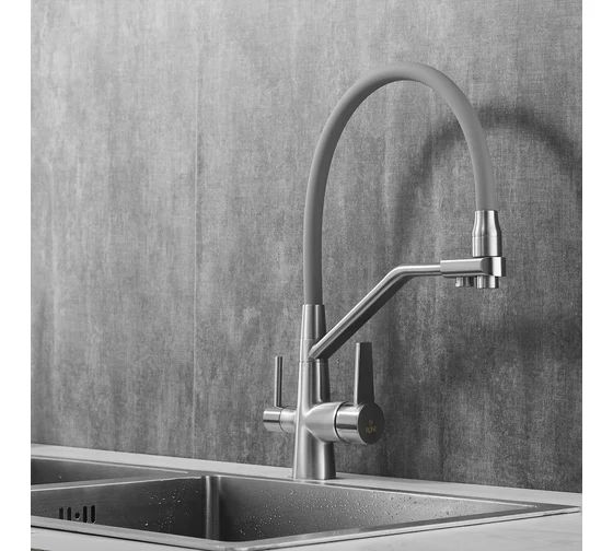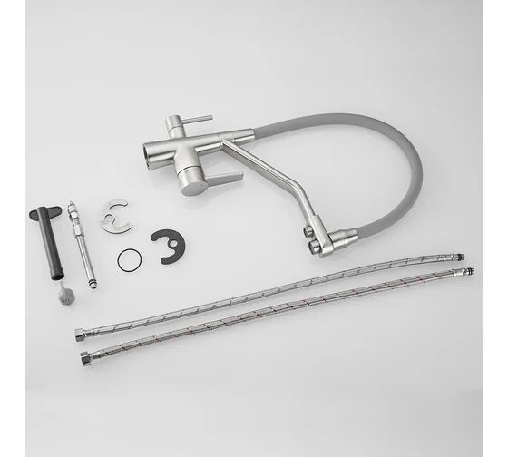 Комплект включает всё для быстрой установки: шпильку, монтажные элементы и ключ. Идеальный выбор для тех, кто ценит качество и эргономику!#Смесительдлякухни