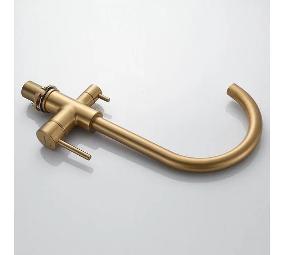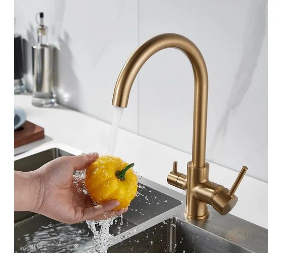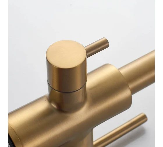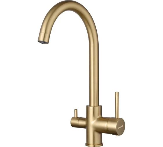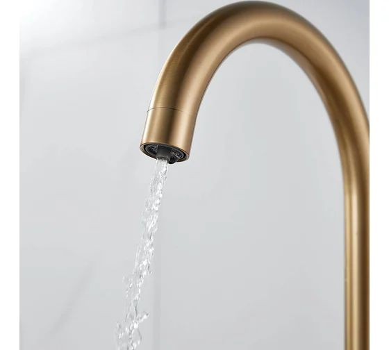 Прочный латунный корпус с матовым золотым покрытием сочетается с современным дизайном, идеально дополняя интерьер любой кухни. Благодаря керамическому картриджу и рычажному управлению обеспечивается бесперебойная работа даже после длительного использования.
