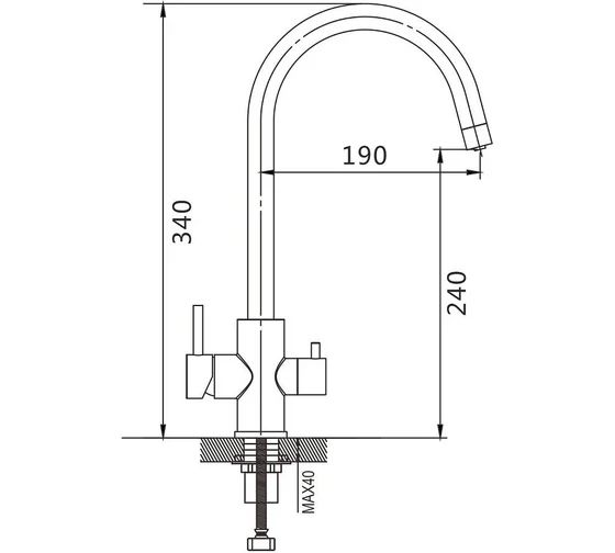 Подключение системы очистки воды интегрировано в конструкцию, что позволяет получать чистую воду прямо из крана. Компактные габариты и оптимальный вес обеспечивают надежную фиксацию на раковине через стандартное крепление.