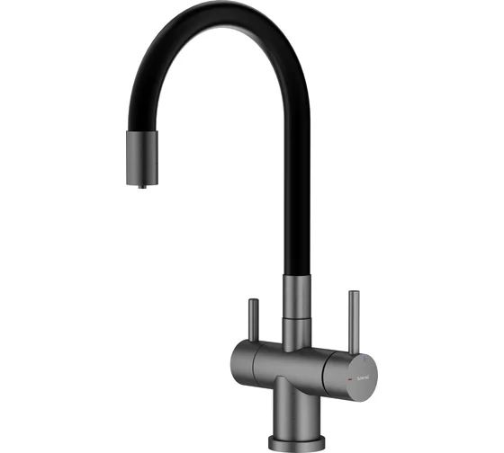 Эргономичный смеситель с рычажным управлением обеспечивает комфортную работу благодаря интуитивному регулированию потока и температуры воды. Выполнен из прочной латуни с матовым покрытием графита, идеально сочетающим функциональность и современный дизайн.