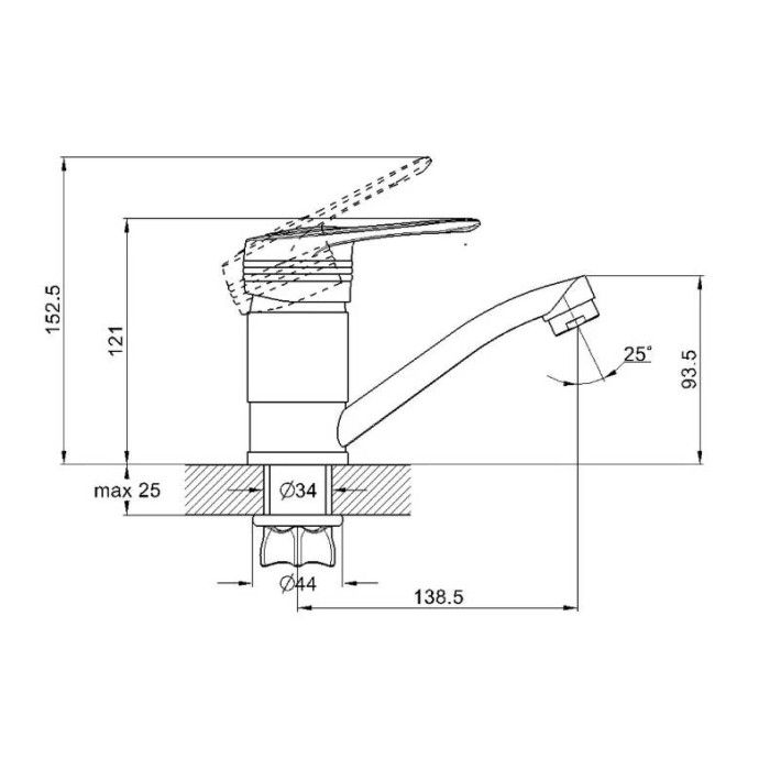 Смеситель для умывальника,плоский излив, гайка PЕD4-В180 ZEGOR