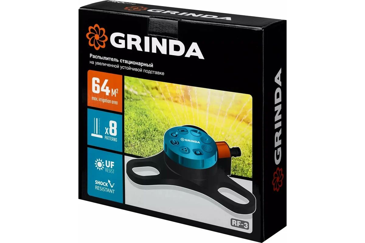 GRINDA RF-3 оснащен 8 режимами работы, что позволяет выбрать наиболее подходящий для ваших нужд. Вы можете использовать его для полива растений, орошения газонов, очистки дорожек и многого другого.