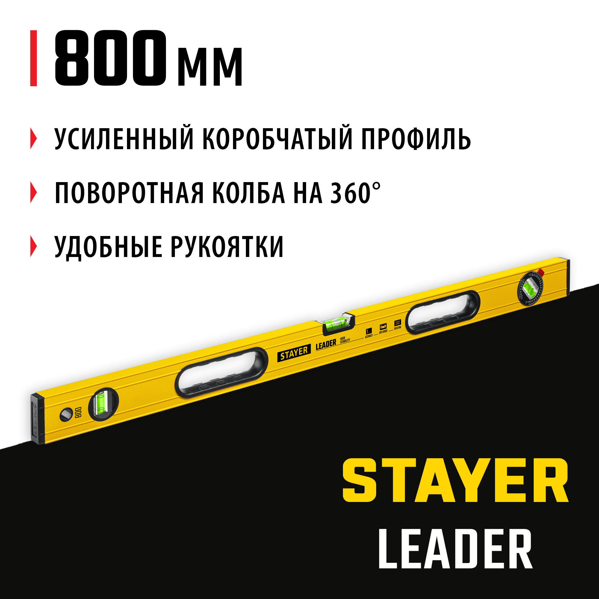 STAYER LEADER, 800 мм, усиленный профиль, уровень с поворотным глазком (3466-080)