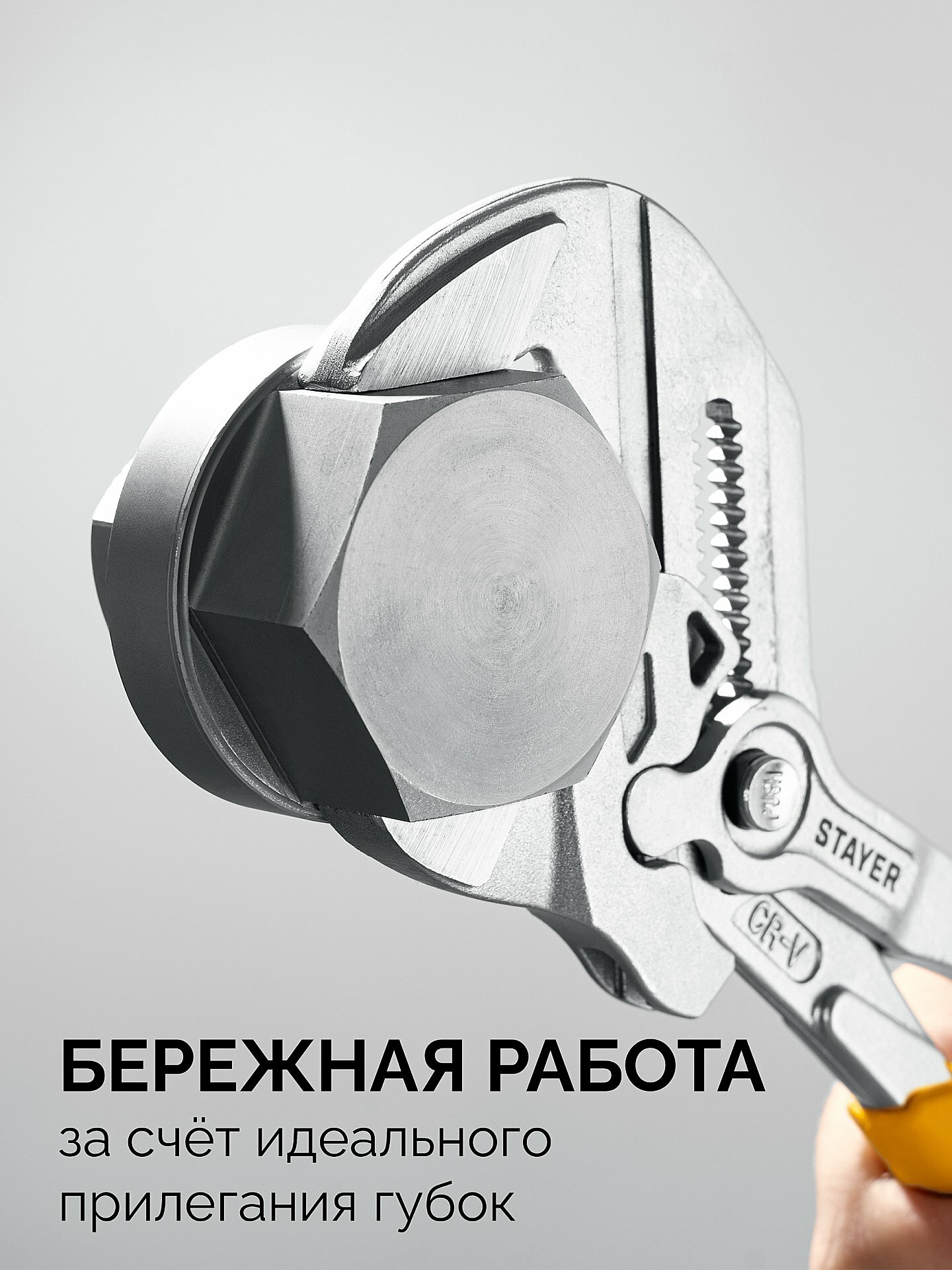 STAYER PlierWrench 300 мм подходит для монтажа и демонтажа крепежных элементов, что делает его многофункциональным инструментом.