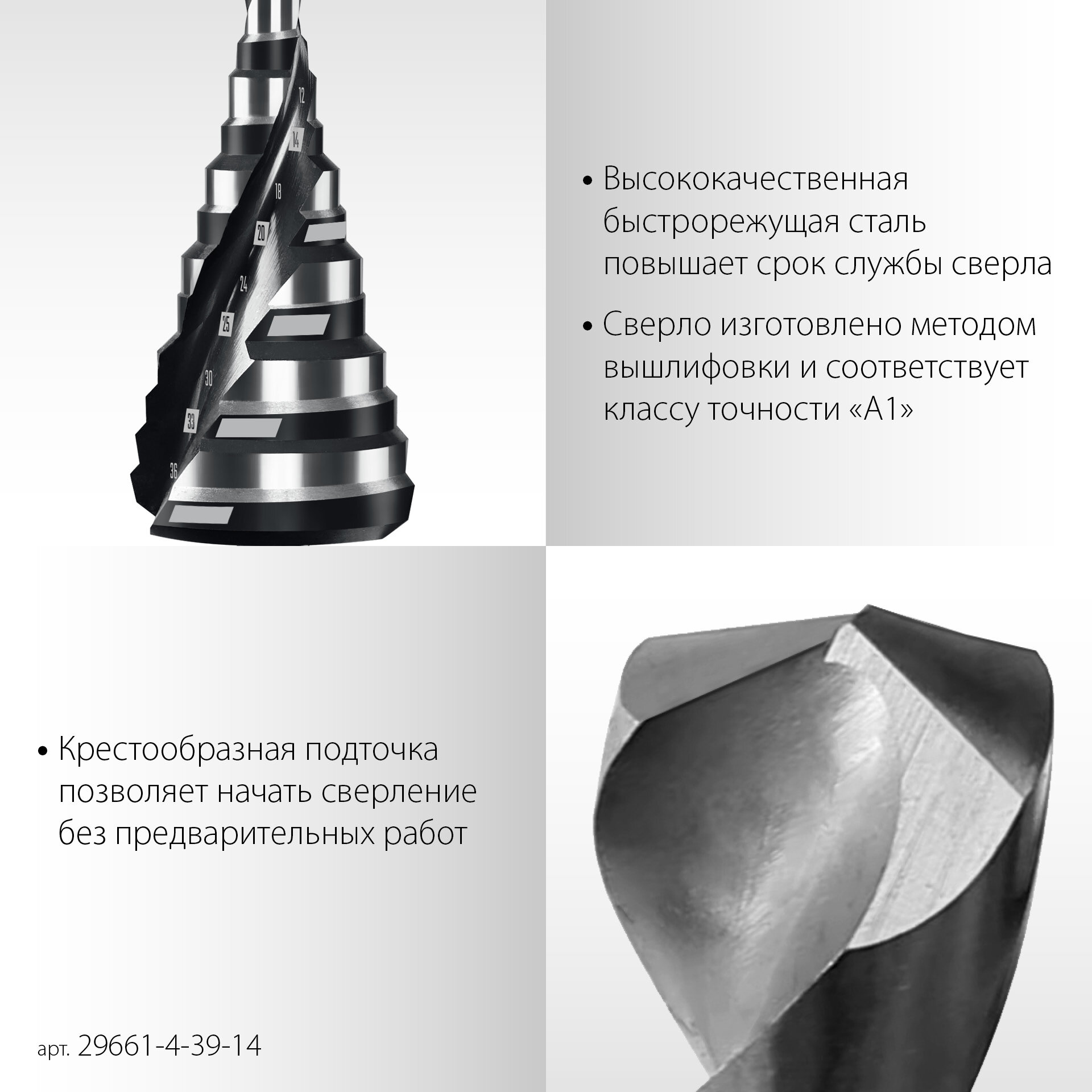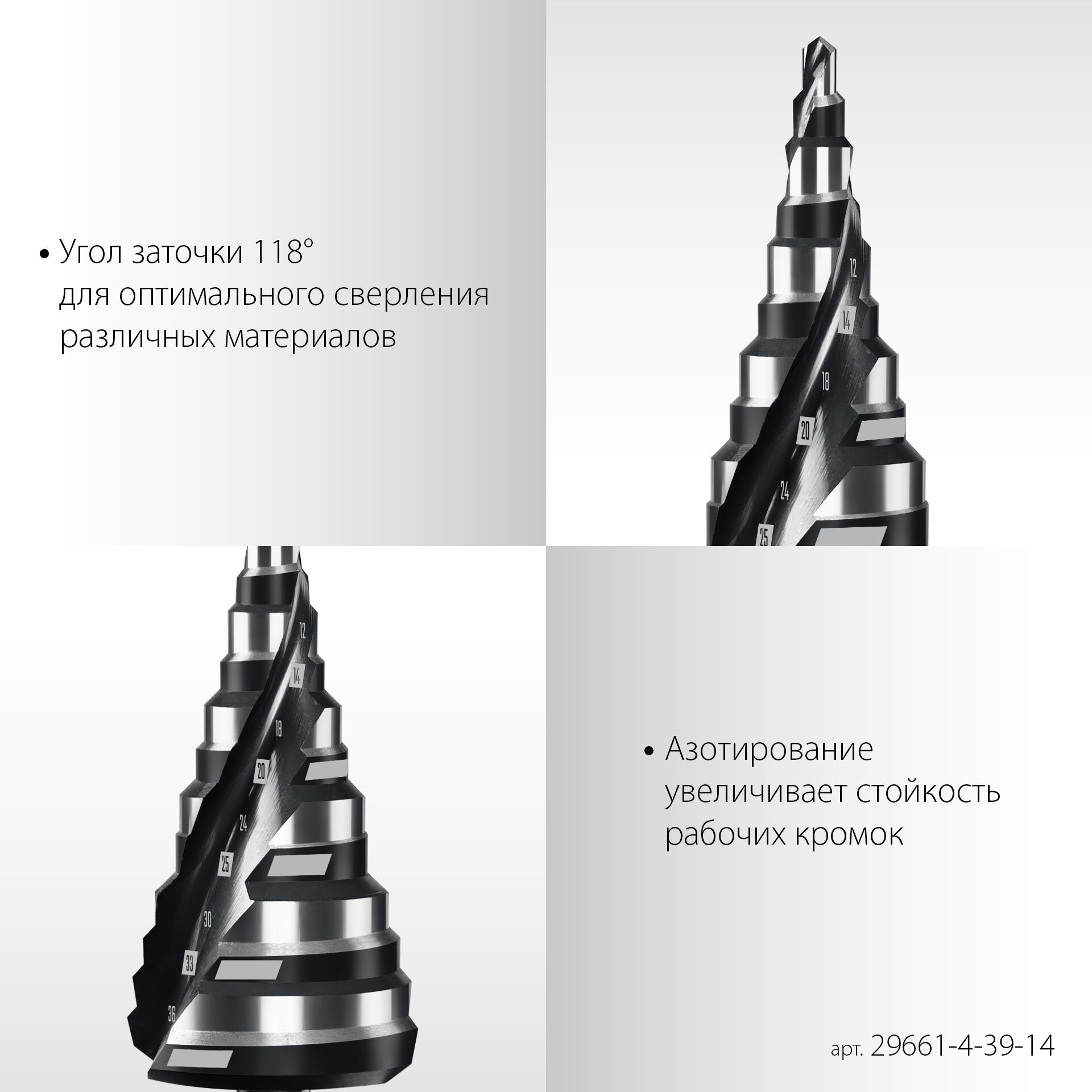 STAYER Pro-Max 4-39мм, 14 ступеней, винтовая спираль, сверло ступенчатое (29661-4-39-14)