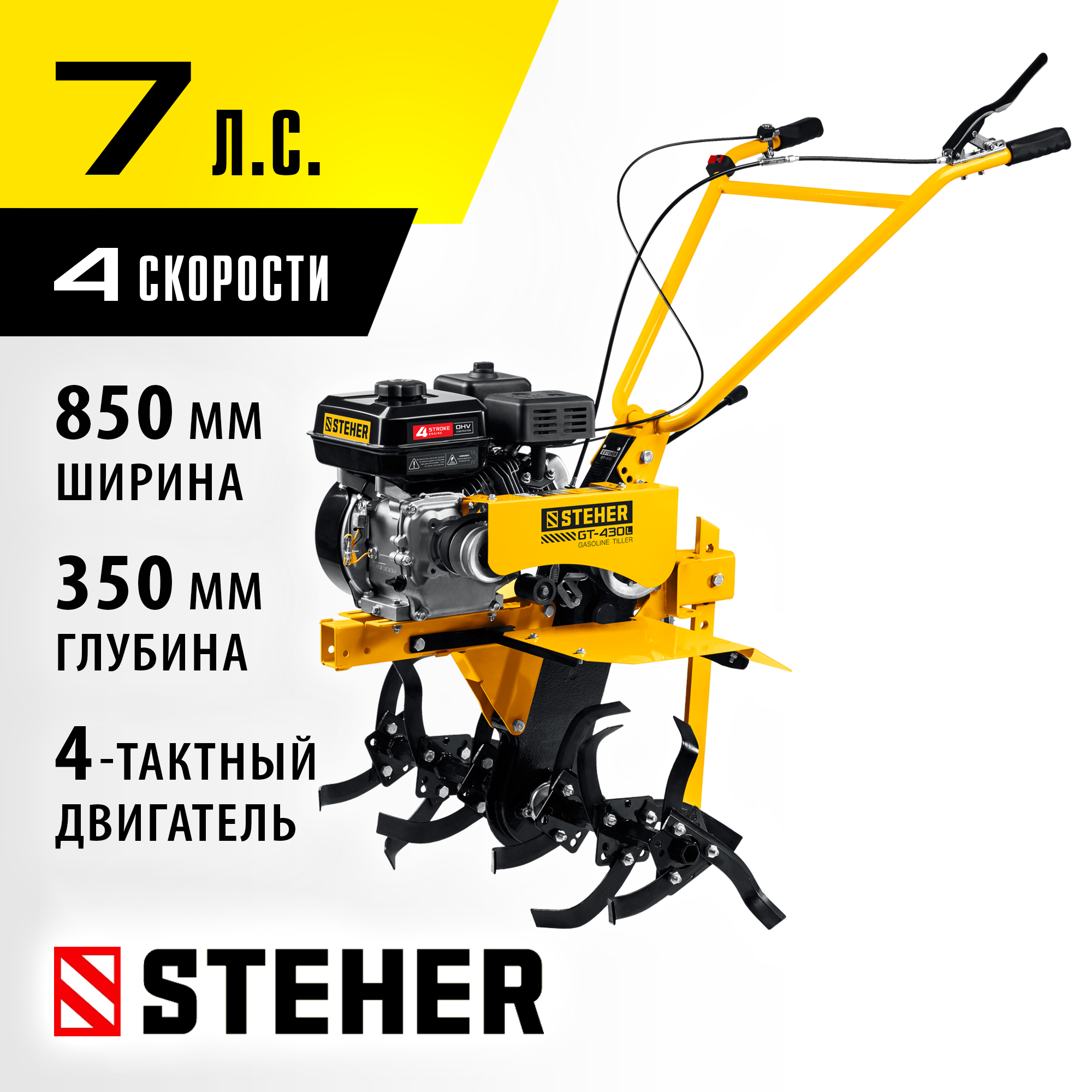 - 3 скорости вперед (понижающая, основная и повышающая) и 1 назад позволяют комфортно работать на любых типах почвы