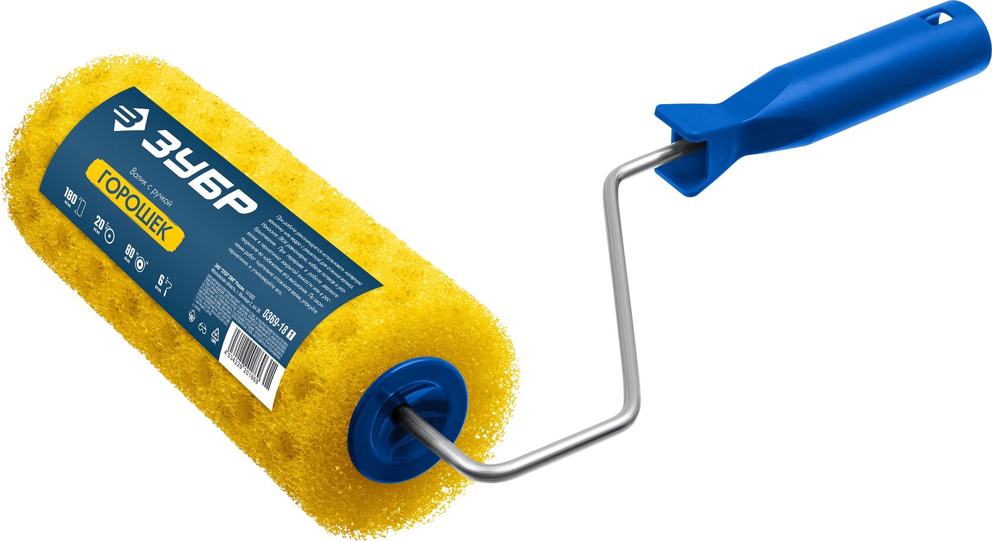 Малярный валик Структурный поролон ЗУБР ГОРОШЕК – идеальный инструмент для малярных работ, предназначенный для нанесения водоэмульсионных и акриловых красок. Его размеры 80 х 180 мм делают валик удобным для работы на больших поверхностях, обеспечивая равномерное покрытие и максимальную эффективность.