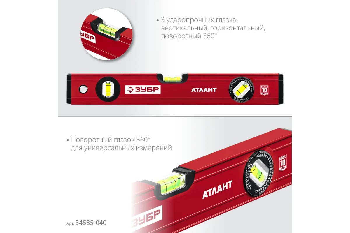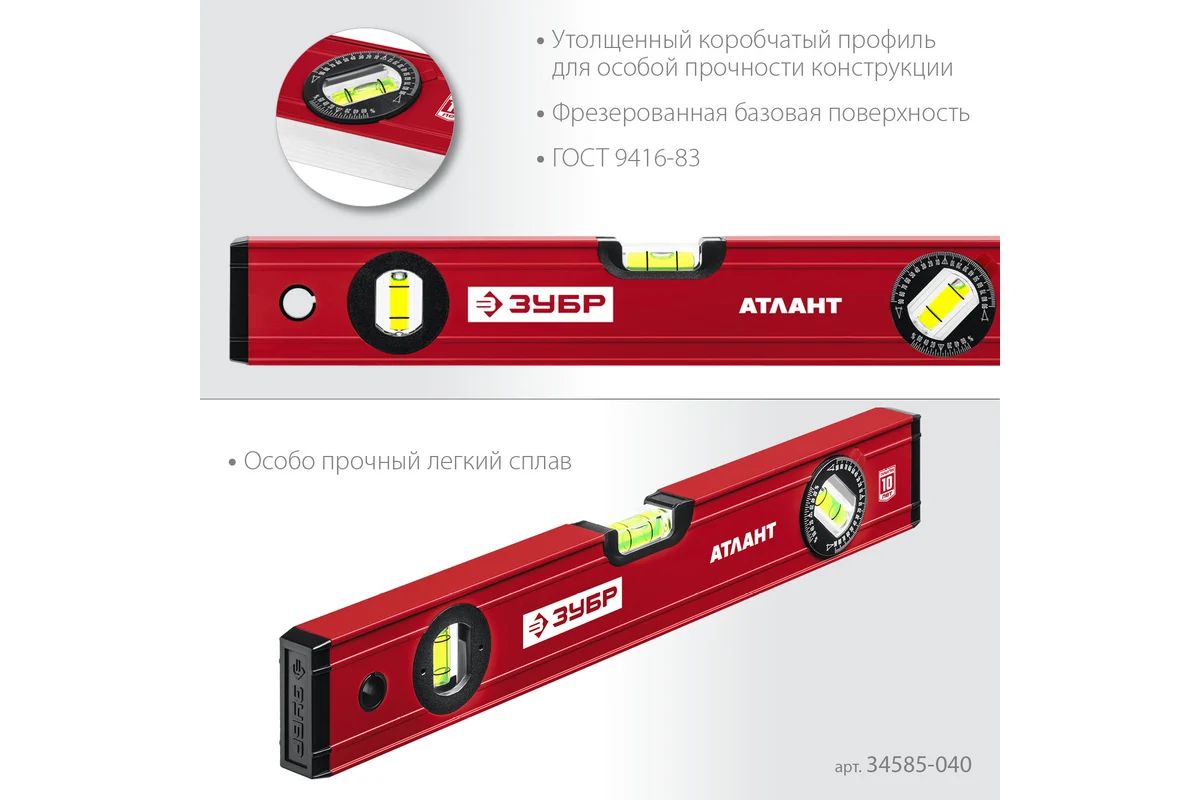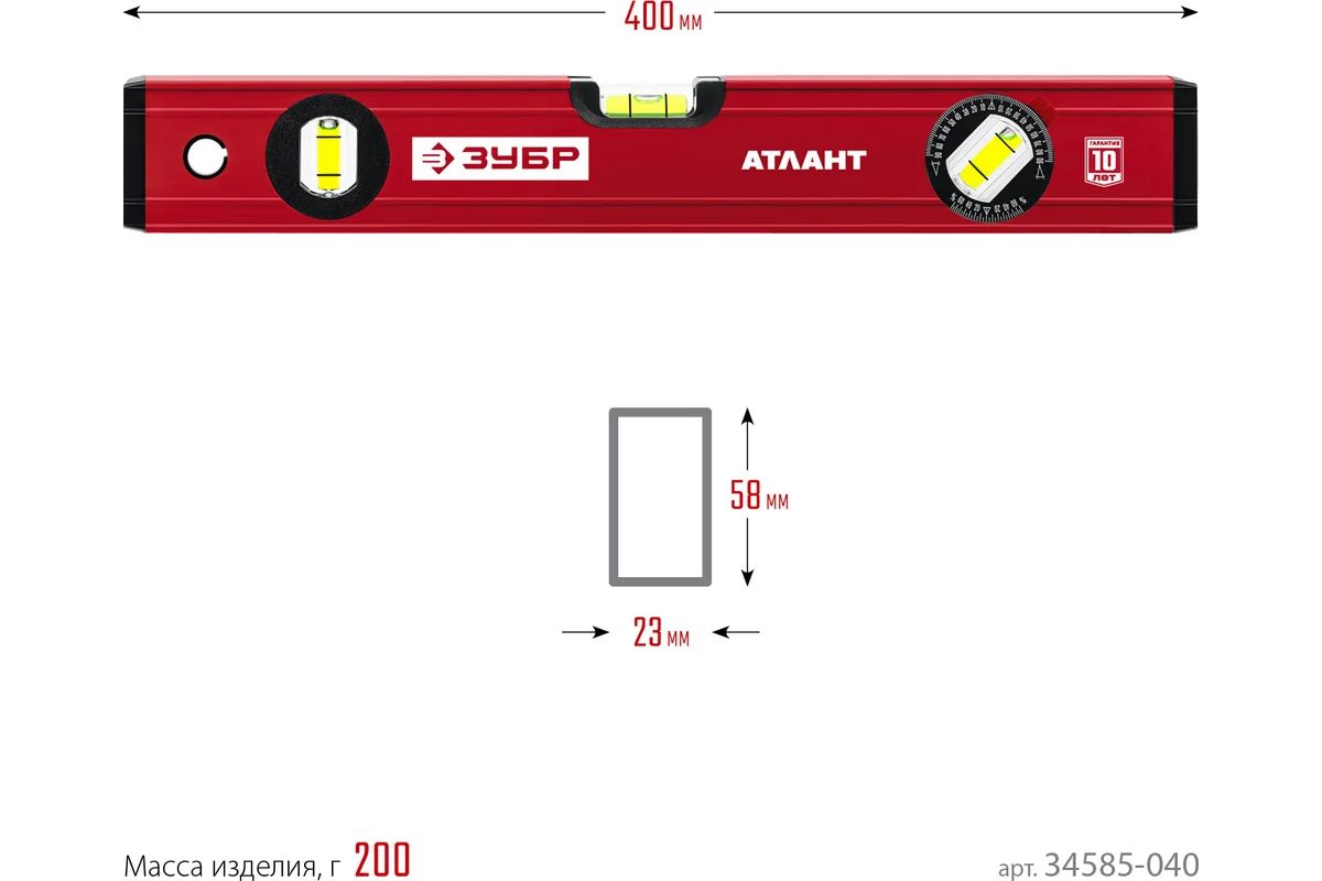 Уровень ЗУБР АТЛАНТ, 400 мм, с усиленным профилем (34585-040)