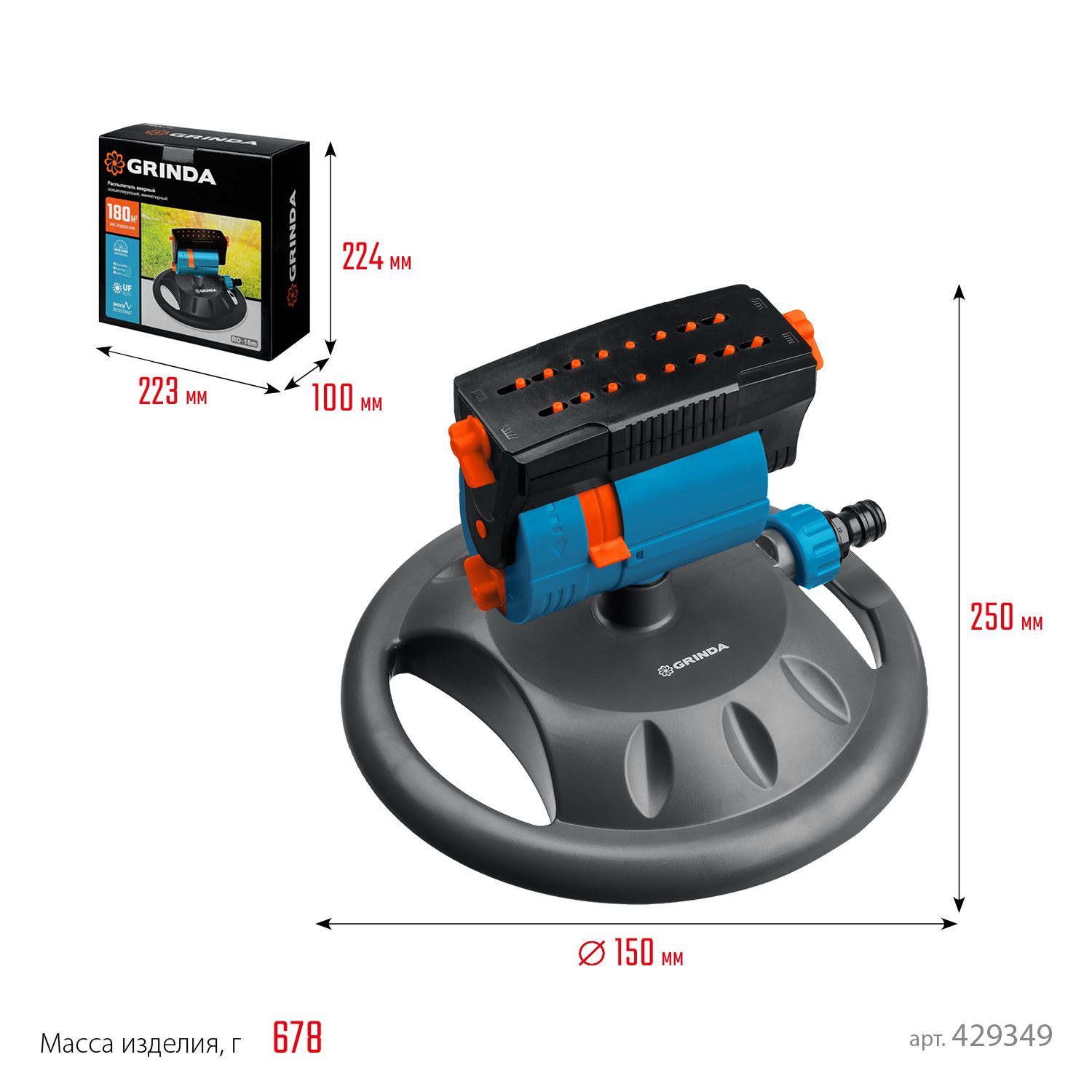 GRINDA RO-16m (429349)- это веерный распылитель, который обеспечивает равномерное и эффективное орошение вашего сада или участка.