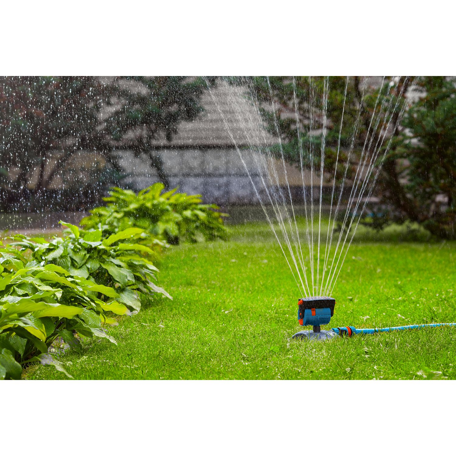 Распылитель оснащен 16 форсунками, что позволяет охватить большую площадь и обеспечить равномерное распределение воды. Это особенно актуально в засушливые периоды, когда растениям требуется дополнительное увлажнение.