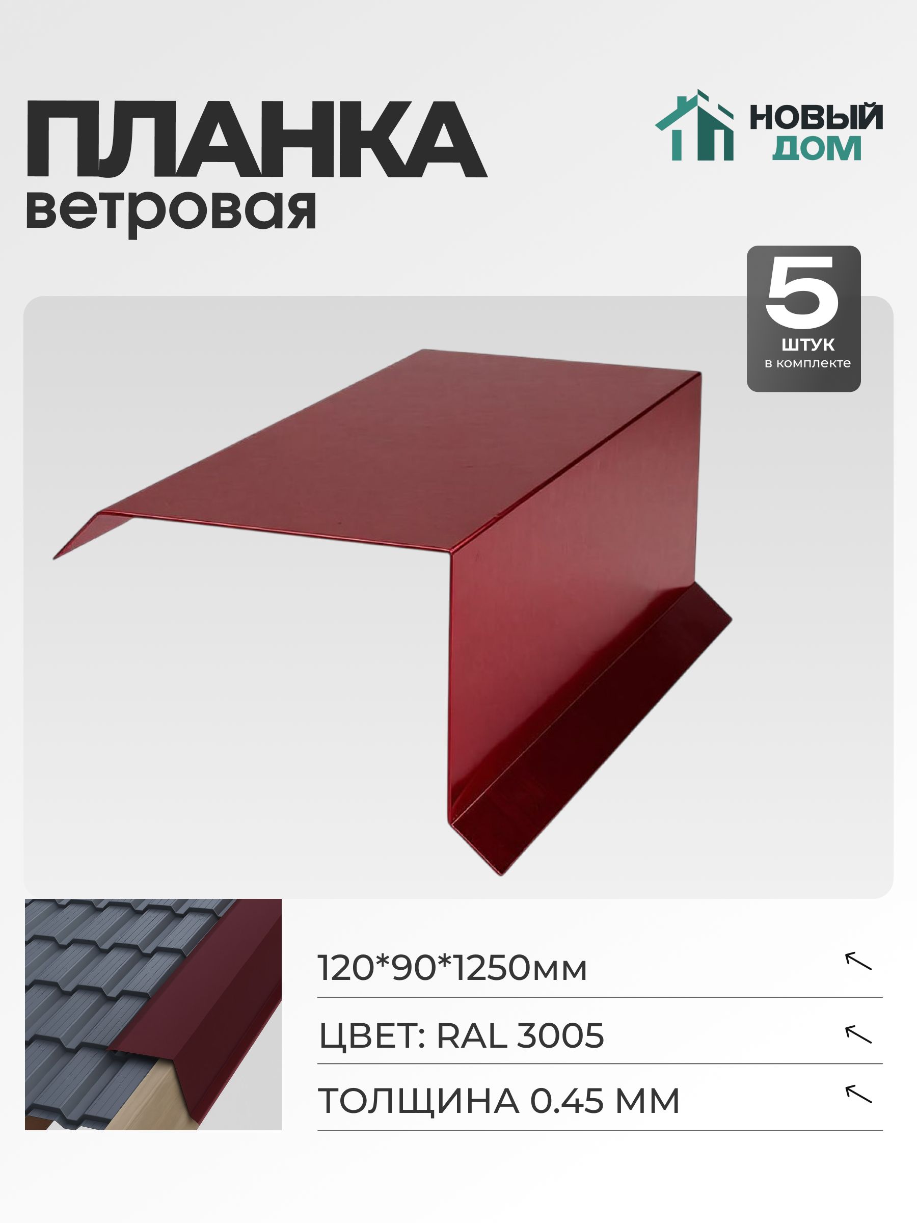 Изготовлена из оцинкованной стали с полимерным покрытием толщиной 0,45 мм, что обеспечивает высокую прочность и долговечность. Цвет планки – красный, соответствующий RAL3005.