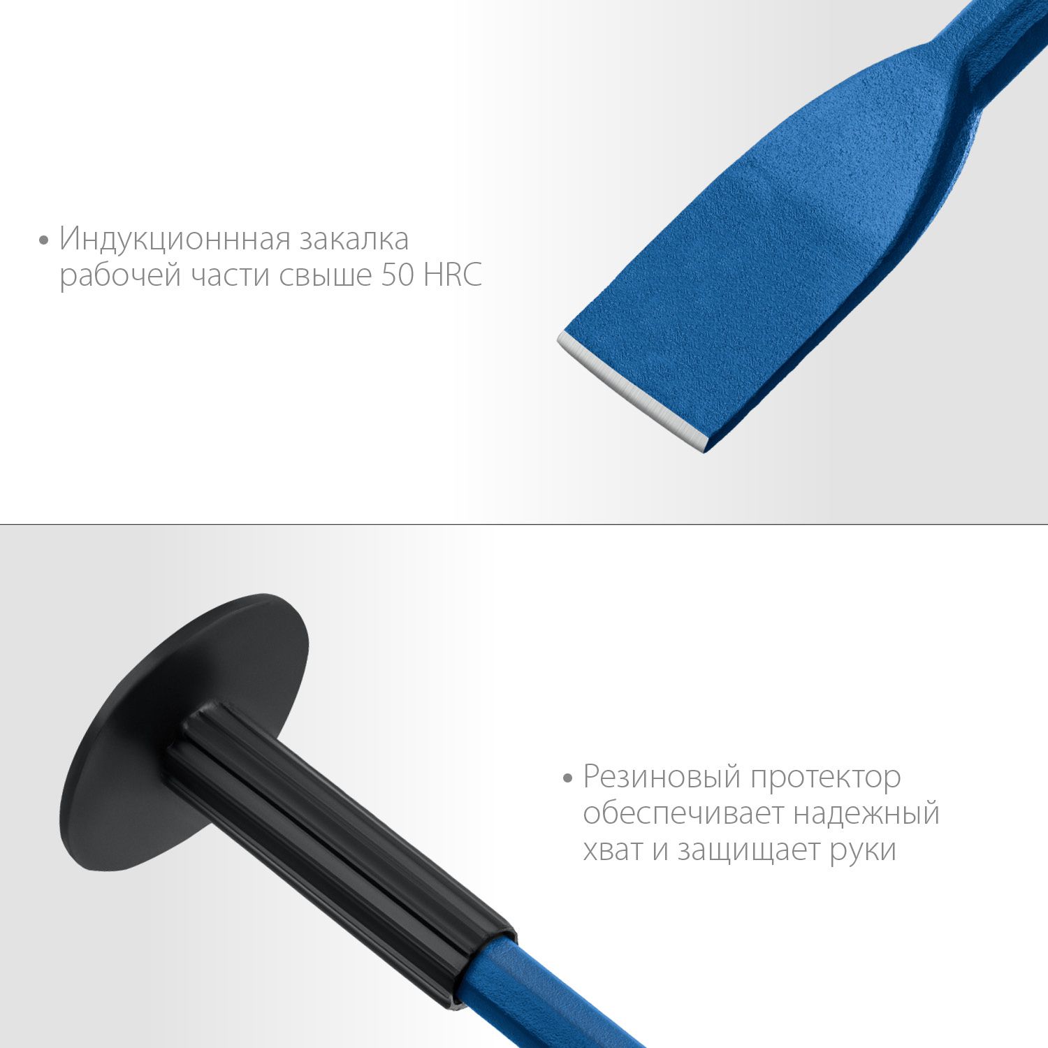 Протектор на зубиле обеспечивает безопасность и удобство в использовании. Он защищает руки от ударов и предотвращает скольжение инструмента в руке. Это особенно важно при работе с твердыми материалами, где риск получения травмы возрастает.