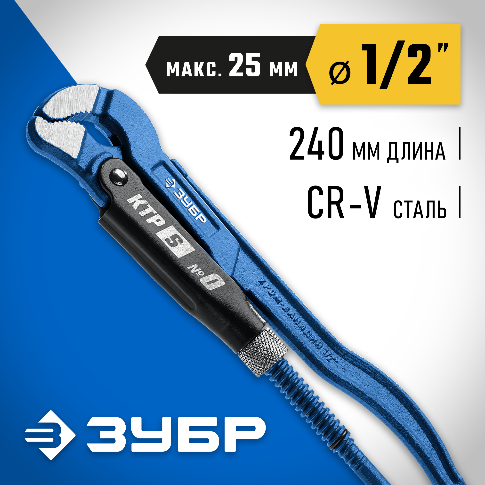 ЗУБР №0, 1/2″, 240 мм, трубный ключ с изогнутыми губками ТИП ″У″, Профессионал (27336-0)