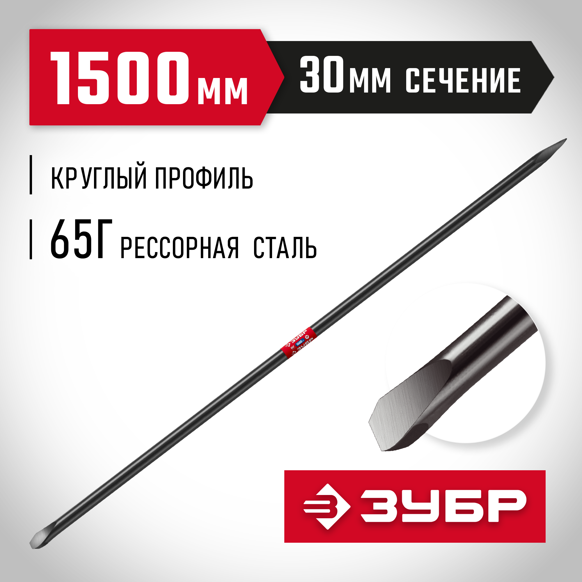 Лом строительный ЗУБР 1500 мм, d 30 мм (2186-1.5) - отличный выбор для профессионалов и любителей, ценящих качество, надежность и функциональность.