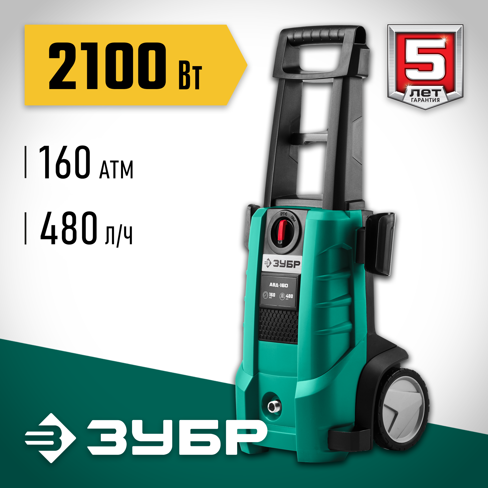 ЗУБР 160 Атм, 2100 Вт, мойка высокого давления, пистолет МИГ-180 (АВД-160)