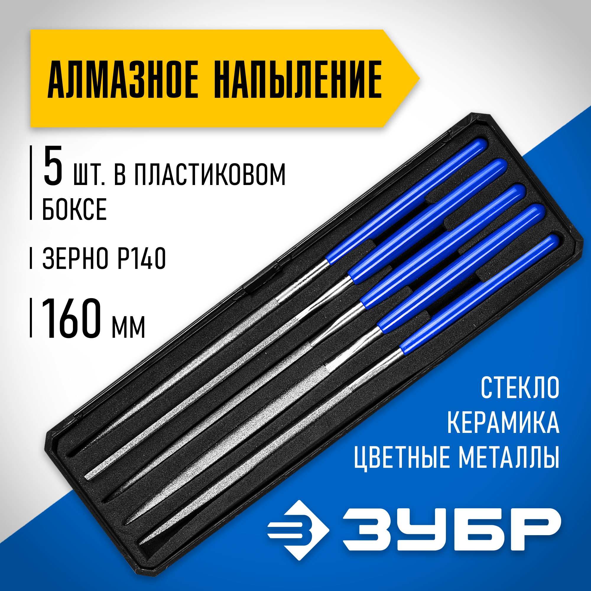 ЗУБР 160 х 80 мм, 5 предметов, P 140, набор алмазных надфелей в пластиковом боксе (33388-160-H5)