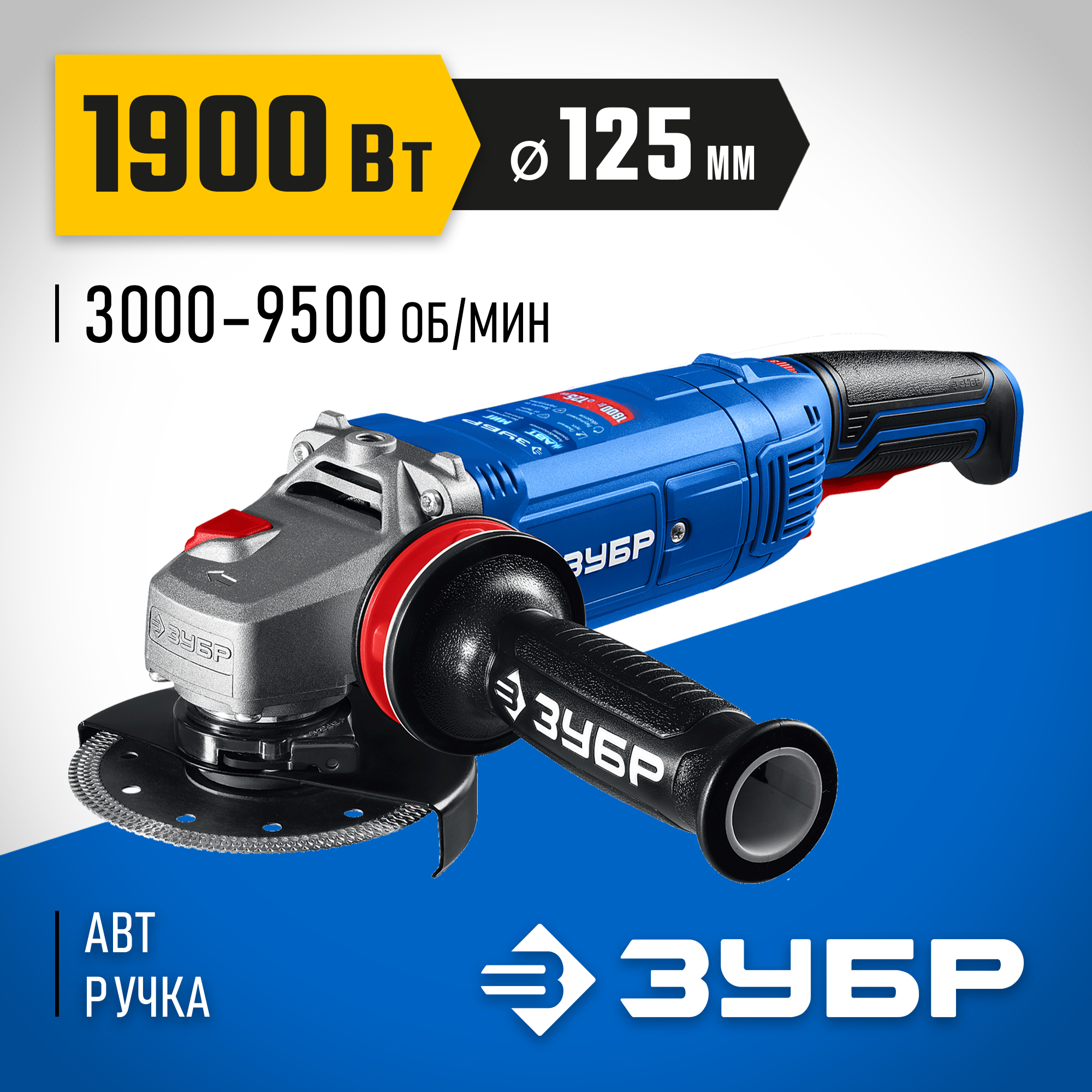Двуручная УШМ с максимальной в линейке машин ЗУБР 125 мм мощностью 1900 Вт и регулировкой оборотов максимально эффективна для всех видов работ - резки металла, кирпича, керамики, зачистки, шлифовки и обдирки. Электронные системы защиты пользователя и изделия, а также антивибрационная рукоятка для эффективного гашения вибрации