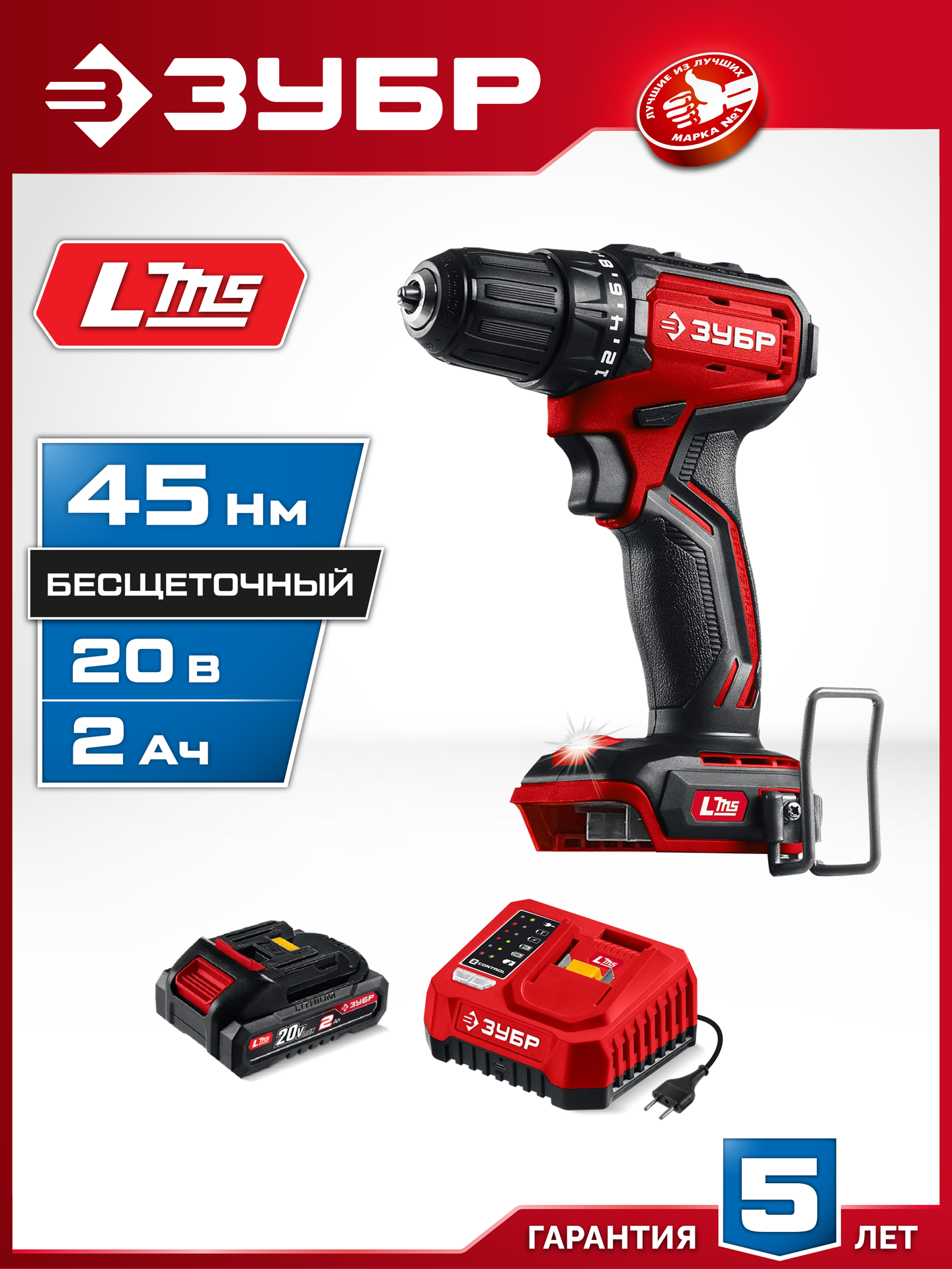 Комплектация: дрель-шуруповерт, аккумулятор LMS (2 А·ч), зарядное устройство, скоба для крепления на поясе, руководство пользователя.