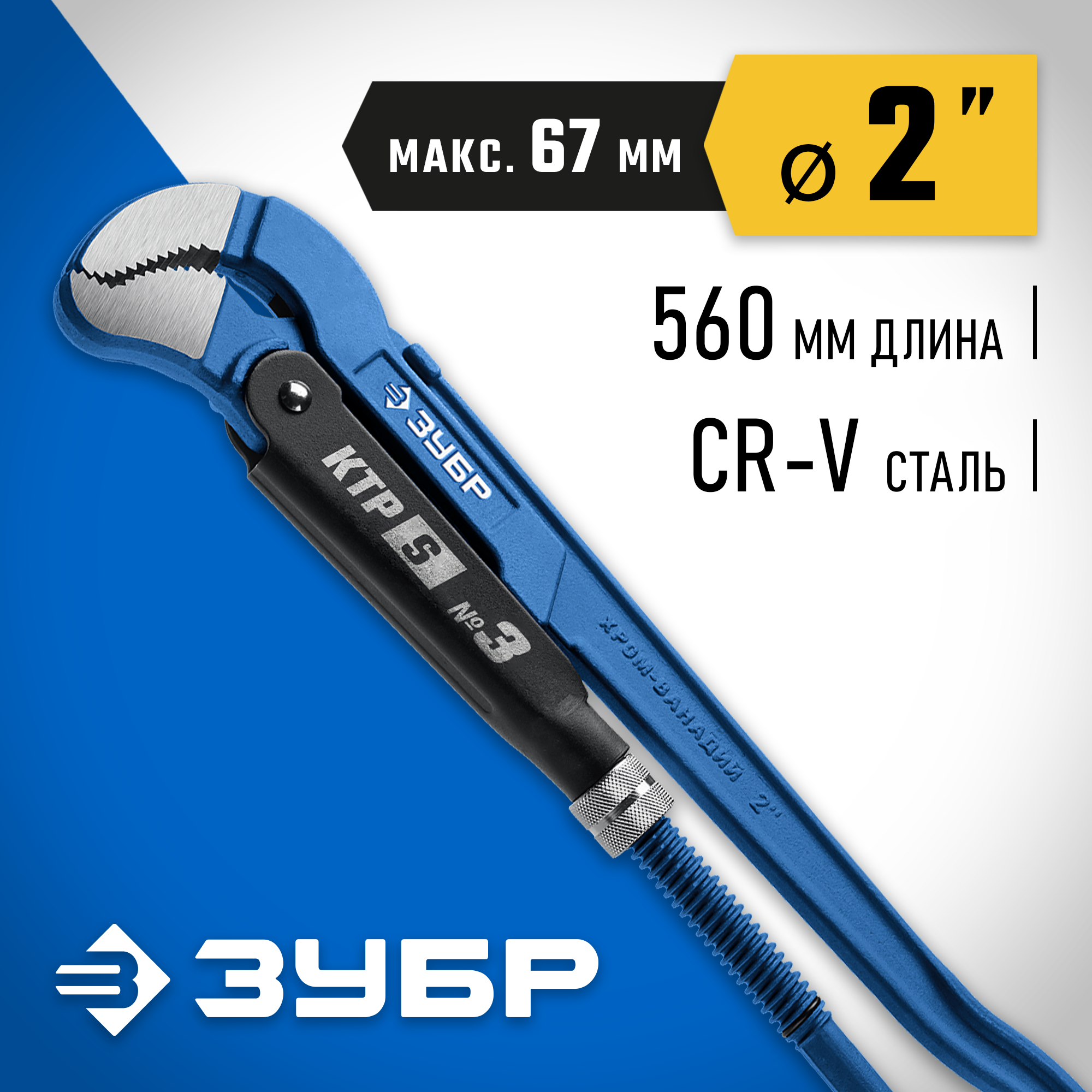 ЗУБР №3, 2″, 560 мм, тип ″У″, трубный ключ с изогнутыми губками, Профессионал (27336-3)