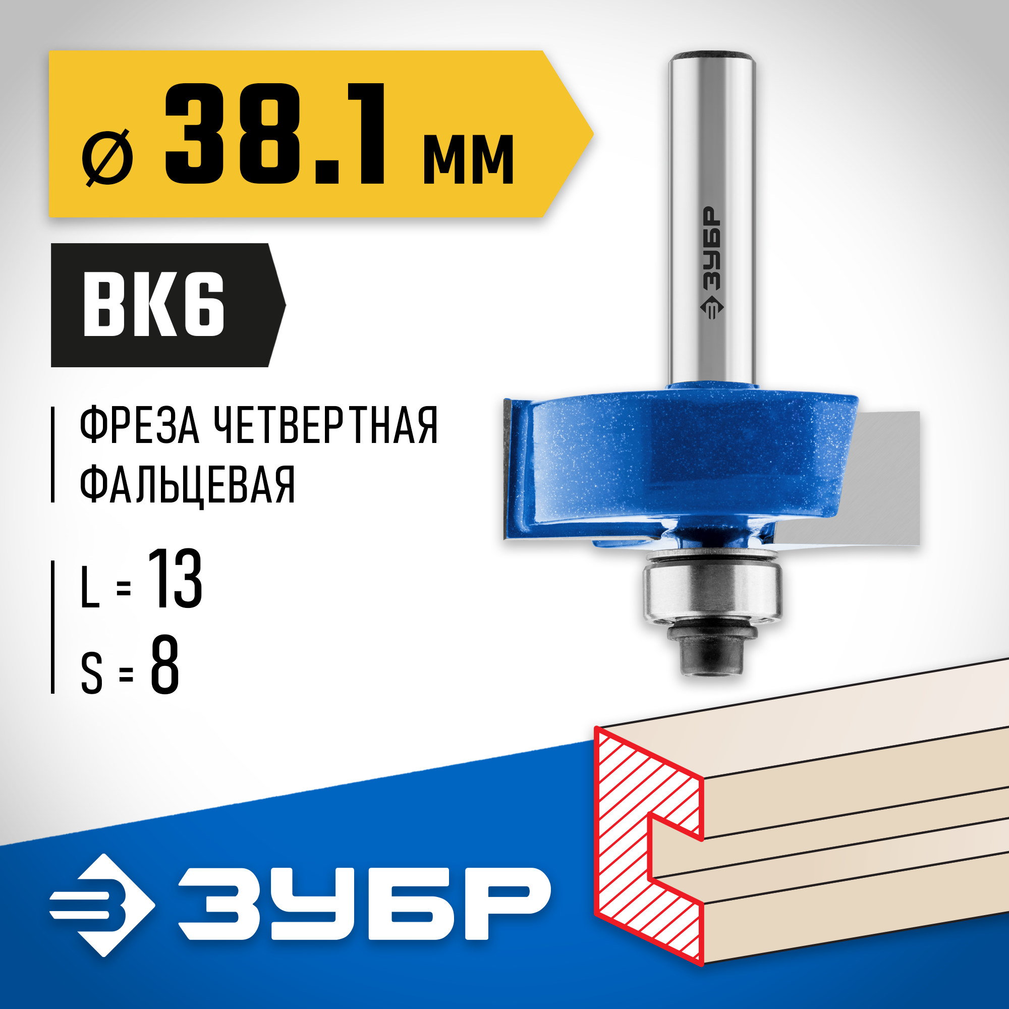Фреза отлично подходит для выборки пазов четвертей на кромках и торцах деталей при работе с различными видами древесины.