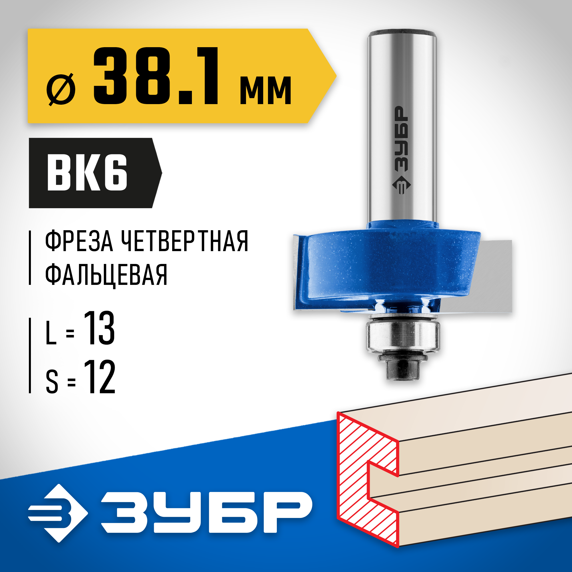 ЗУБР 38.1 x 13 мм, хвостовик 12 мм, фреза фальцевая, Профессионал (28758-38.1-12)