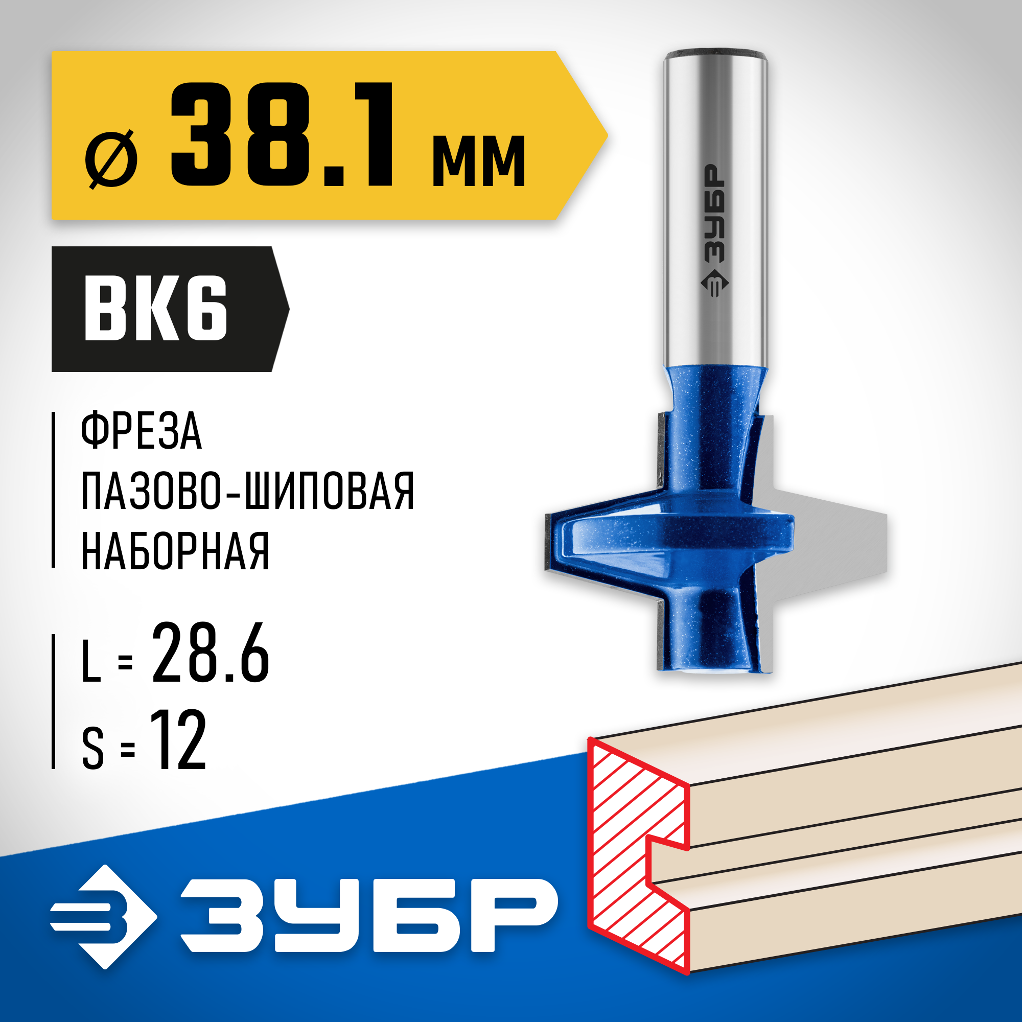 ЗУБР 38.1 x 28.6 мм, хвостовик 12 мм, фреза пазо-шиповая наборная, Профессионал (28731-38.1-1)