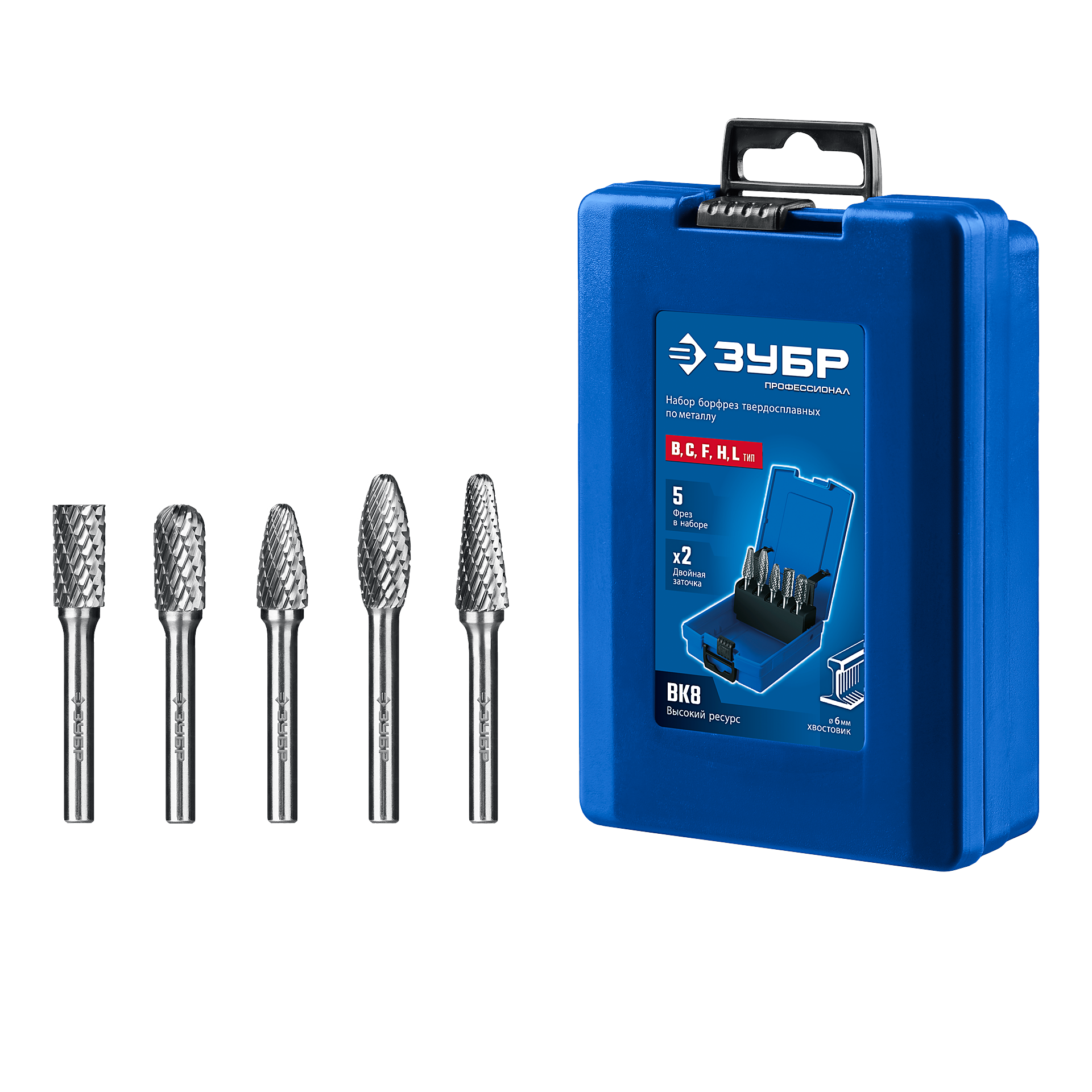 ЗУБР 5 шт набор борфрез твердосплавных, хв-к 6 мм, ПРОФЕССИОНАЛ (28815-H5)