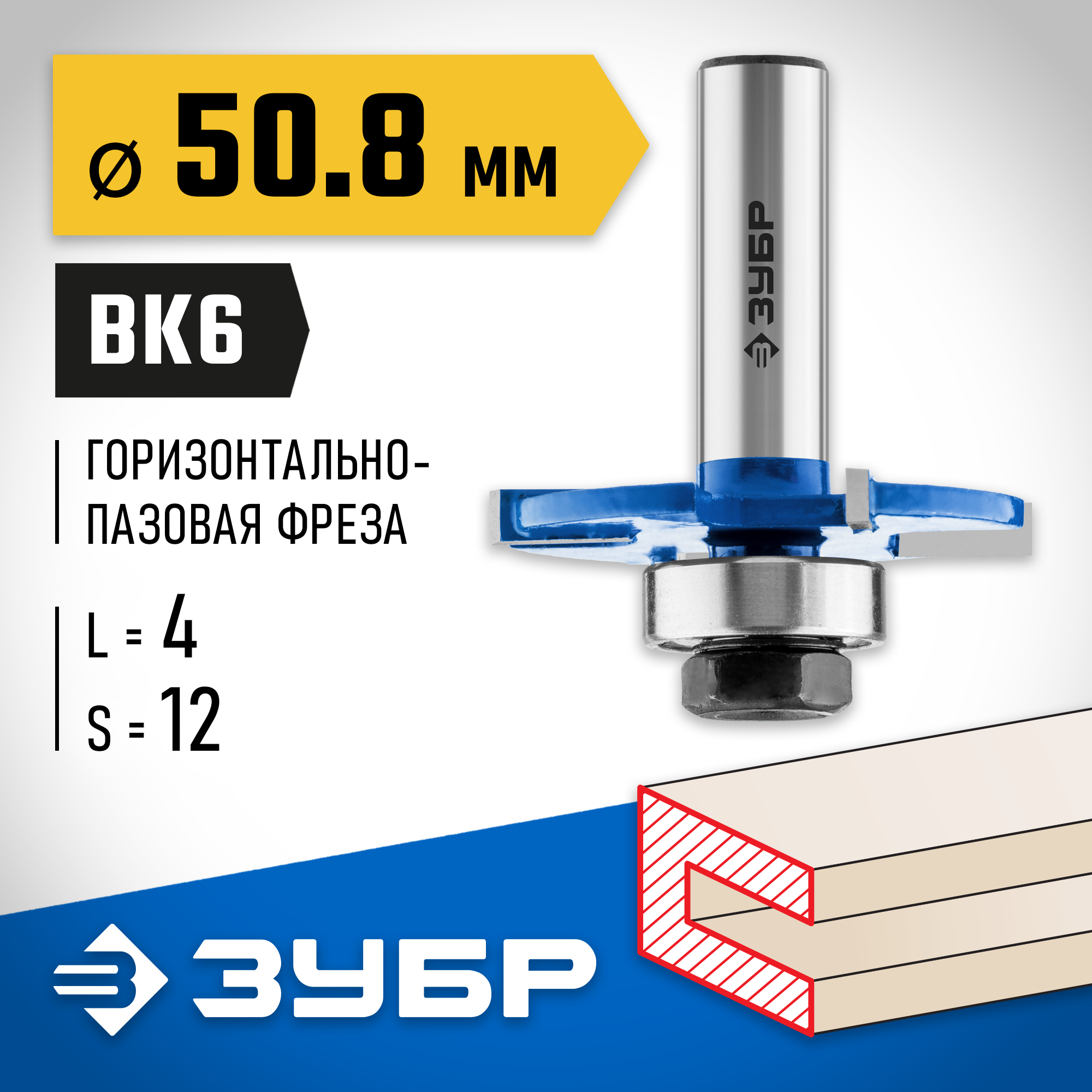 ЗУБР 50.8 x 4 мм, хвостовик 12 мм, фреза горизонтально-пазовая, Профессионал (28757-50.8-4-12)