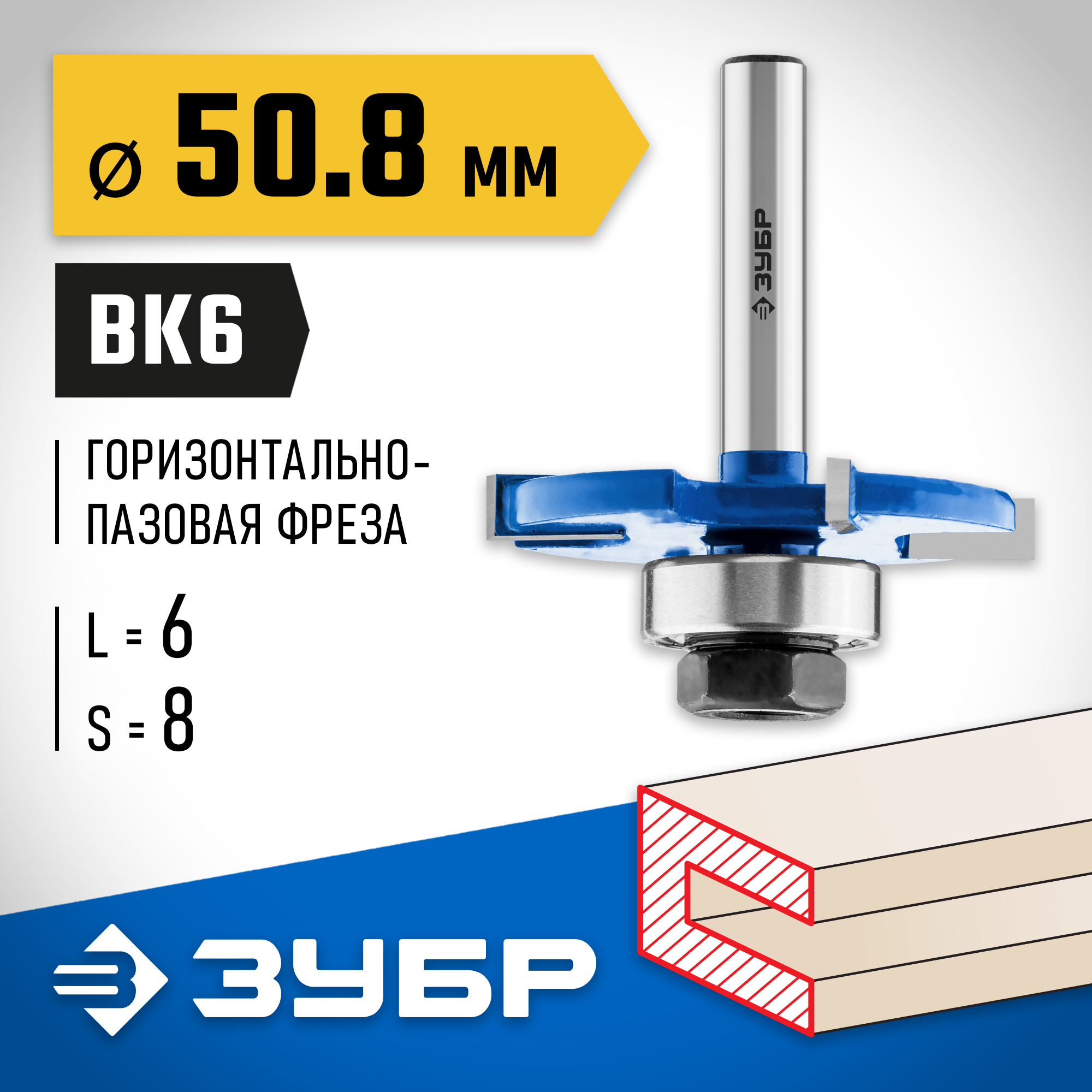 ЗУБР 50.8 x 6 мм, хвостовик 8 мм, фреза горизонтально-пазовая, Профессионал (28757-50.8-6)