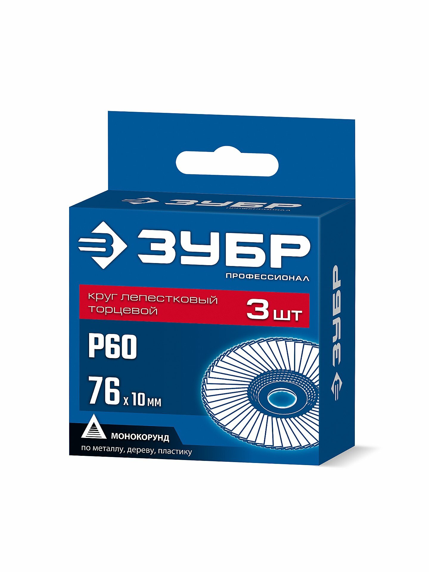 Круги шлифовальные ЗУБР 76 х 10 мм, P60, 3 шт., КЛТ для мини-УШМ, Профессионал (36591-76-60-H3)