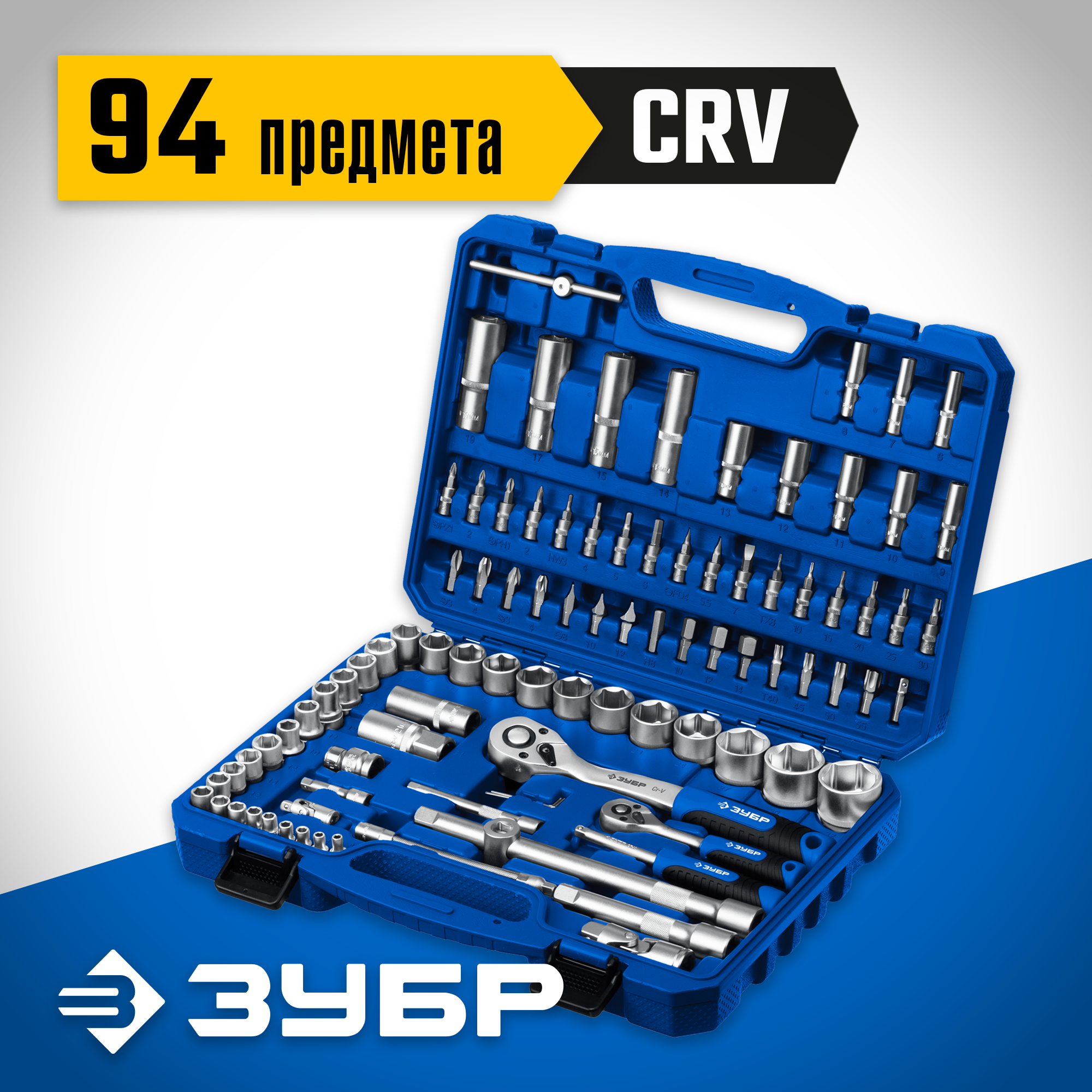 ЗУБР А-94 - это профессиональный набор инструментов, состоящий из 94 предметов. Он включает в себя как 1/2″, так и 1/4″ инструменты, что делает его удобным для выполнения широкого спектра работ.
