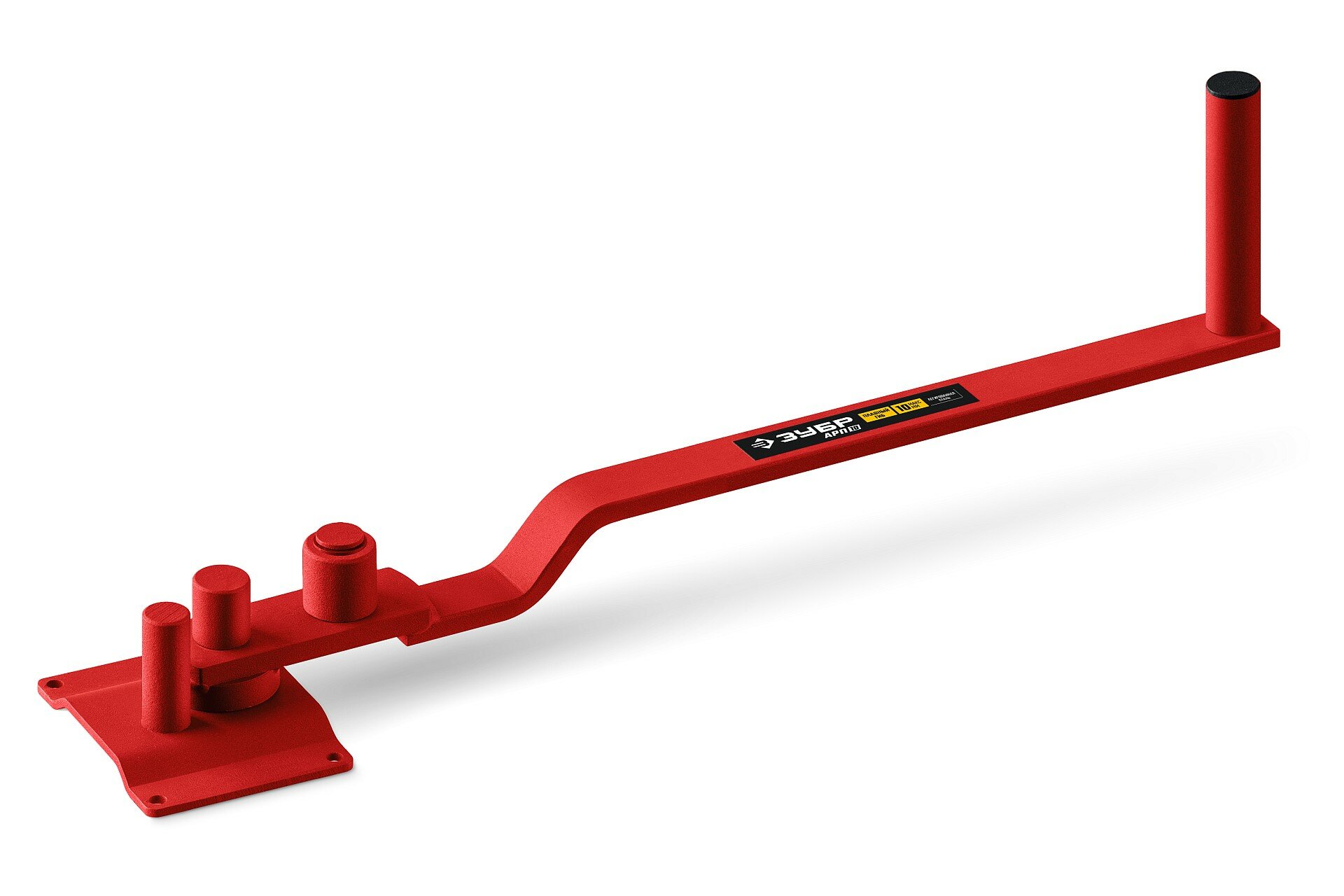 Профессиональный Арматурогиб ЗУБР для плавного гиба гладкой и рельефной арматуры Ролики из прочной конструкционной стали 45 Усиленная конструкция Создание крюков и держателей для труб Возможность увеличивать рычаг для облегчения процесса гибки Отверстия для надёжной фиксации Увеличенный ресурс