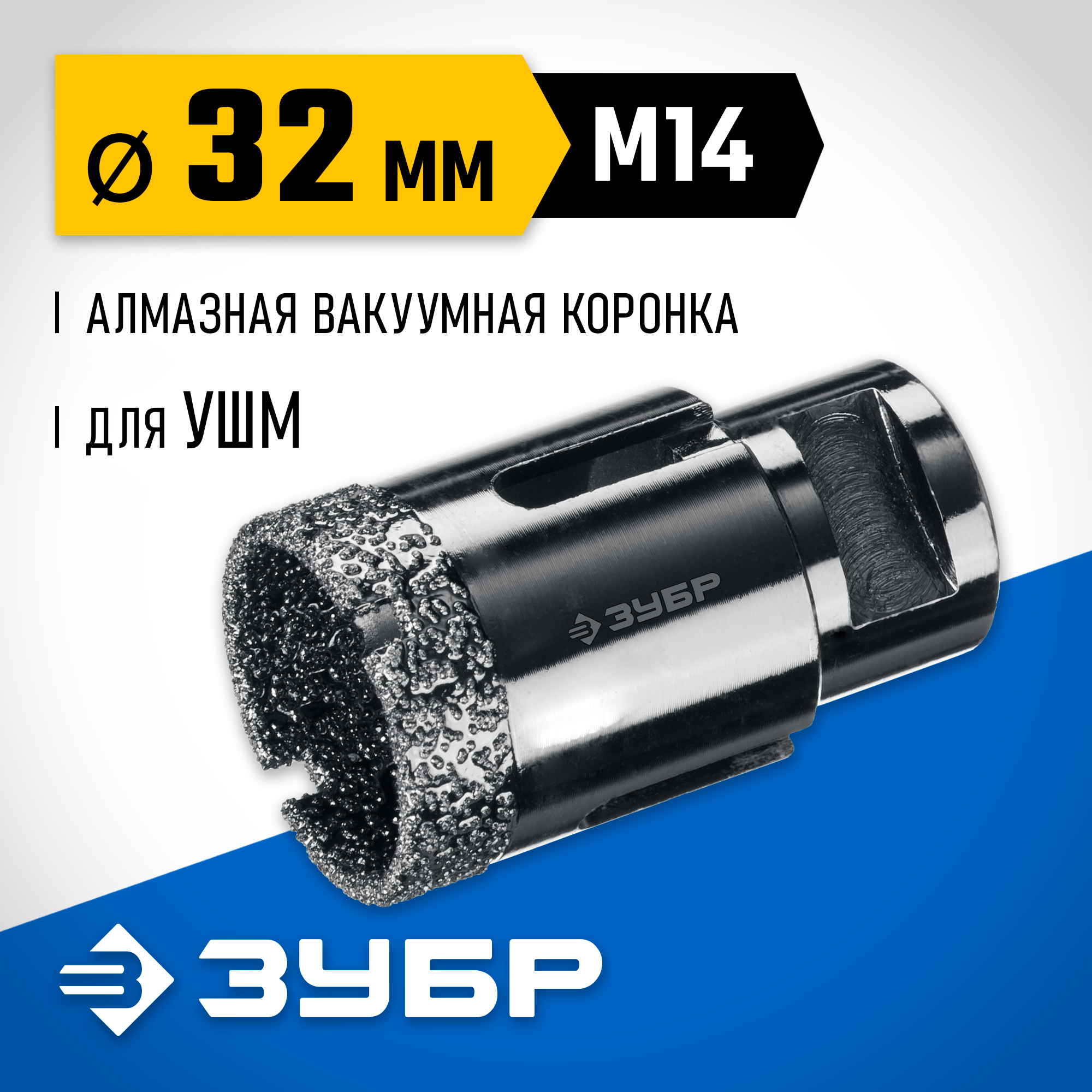 ЗУБР АВК, d 32 мм, (М14, 15 мм кромка), вакуумная алмазная коронка, Профессионал (29865-32)