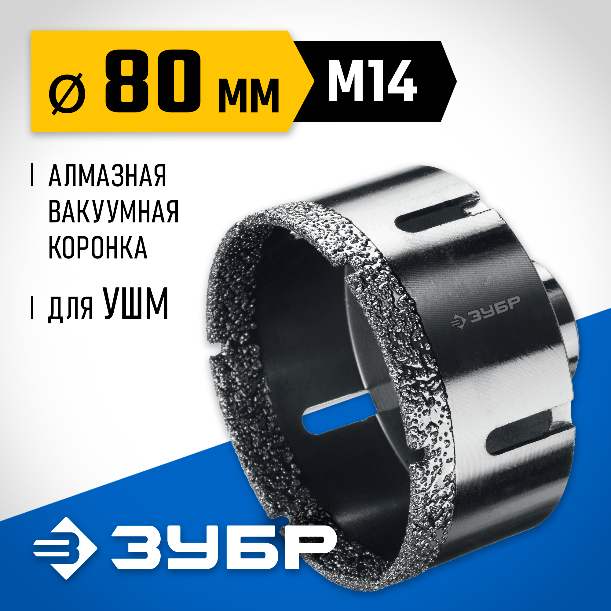 ЗУБР АВК, d 80 мм, (М14, 15 мм кромка), вакуумная алмазная коронка, Профессионал (29865-80)