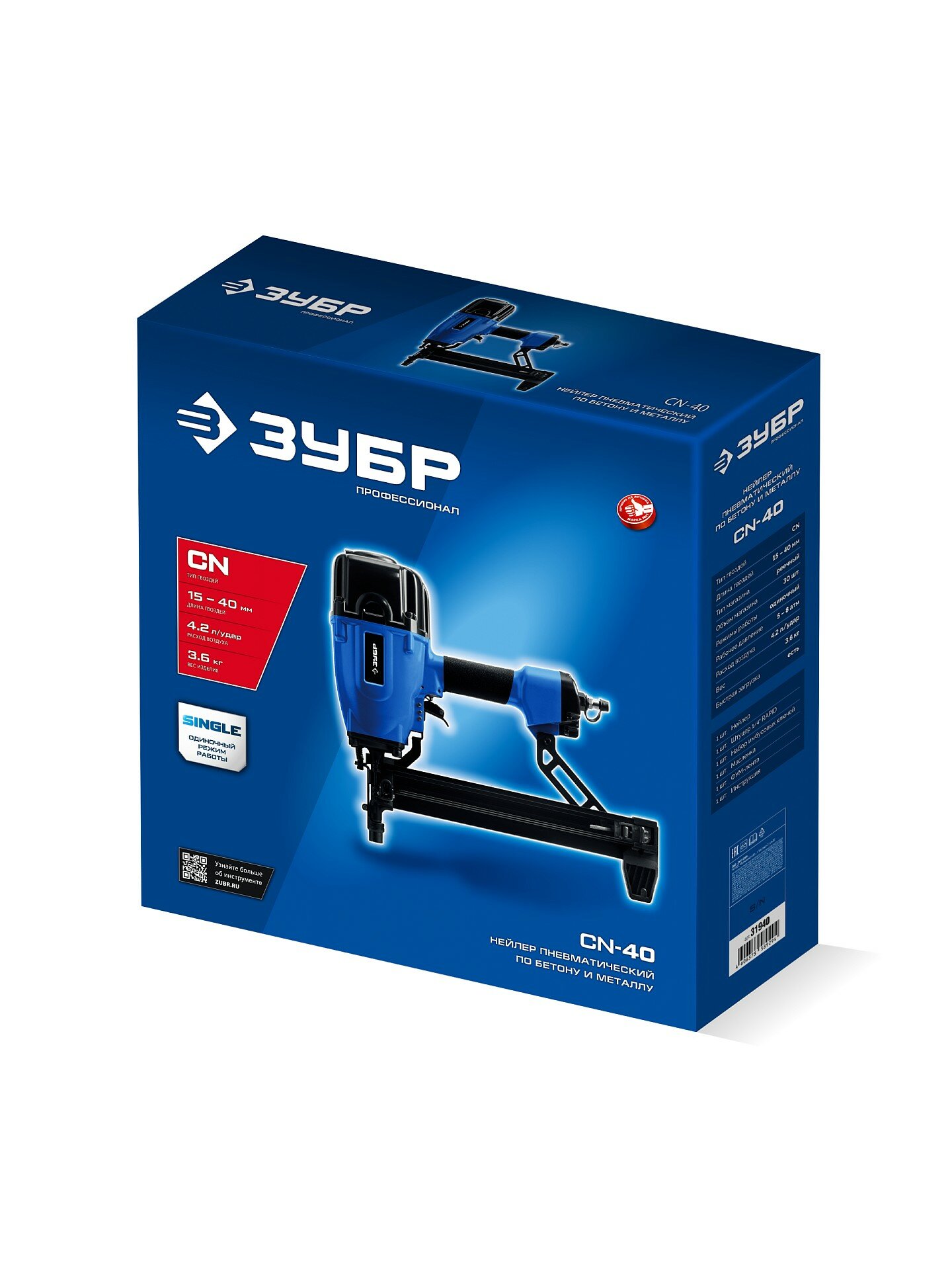 ЗУБР CN-40, пневматический нейлер для гвоздей по бетону и металлу ПРОФЕССИОНАЛ (31940)