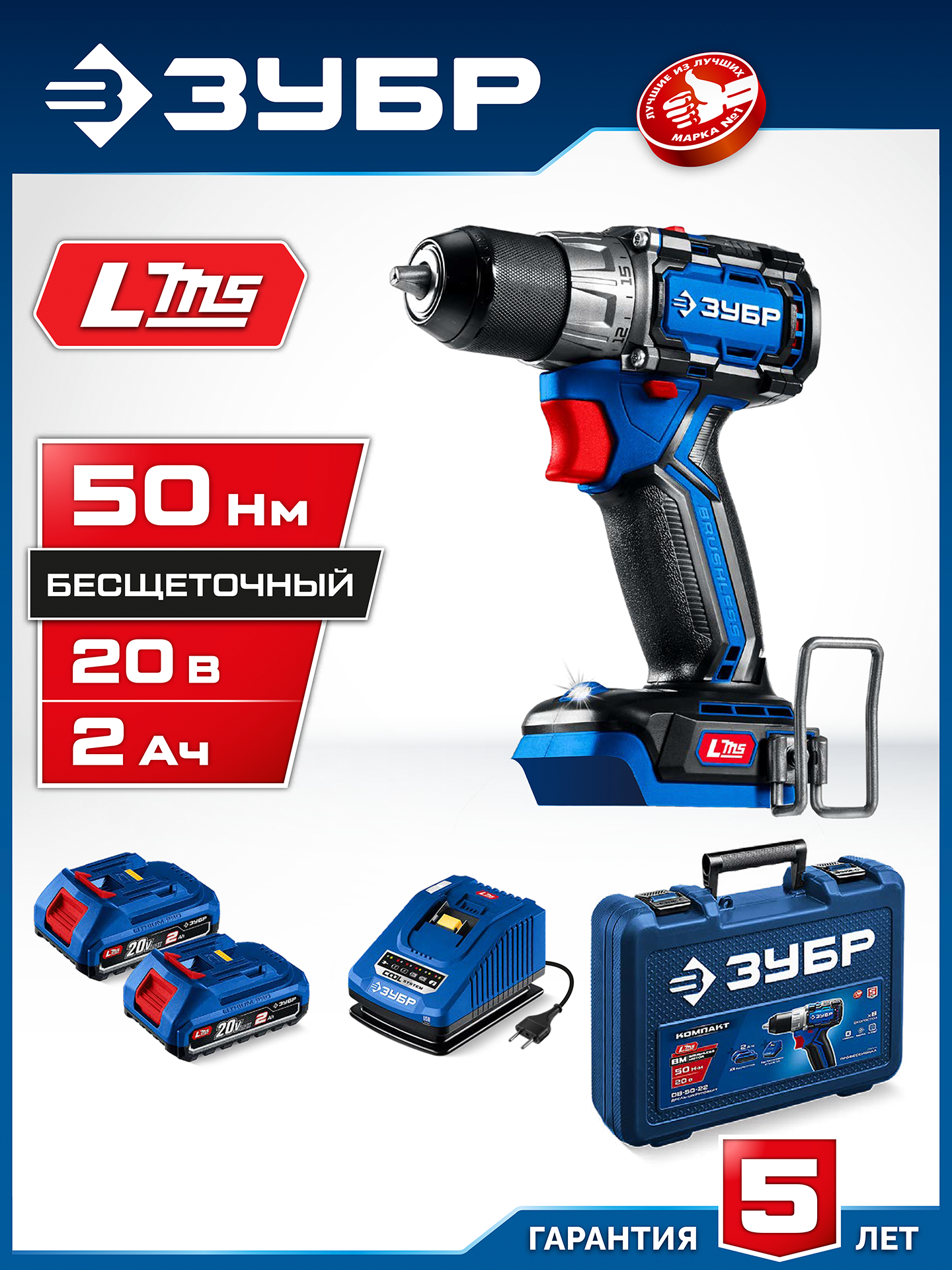 ЗУБР КОМПАКТ #2 20 В - это дрель-шуруповерт профессионального уровня, которая оснащена бесщеточным двигателем. Благодаря этому, инструмент обладает рядом преимуществ: высокий крутящий момент, высокий КПД, повышенная надежность и низкое энергопотребление.