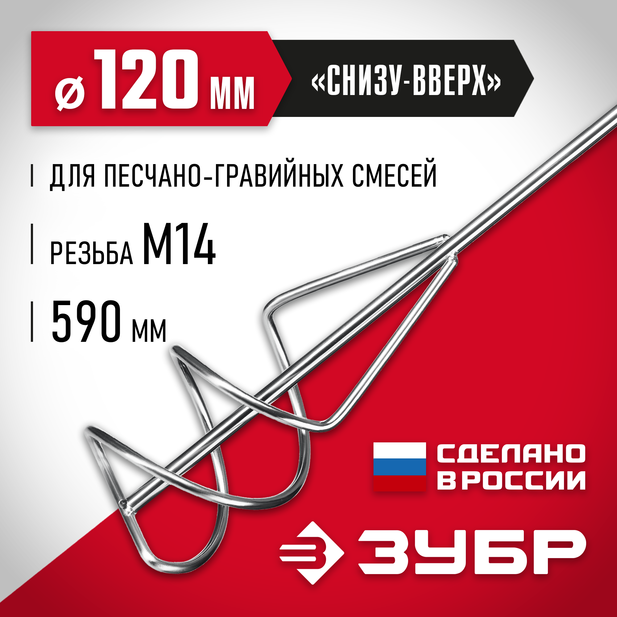 Насадка с лопастями для перемешивания песчано-гравийных смесей. Используется совместно с ручными миксерами ЗУБР ЗМР-1200Э-1, МР-1050-1, МР-1100, МР-1400-2 и МР-1600-2. Сделано в России