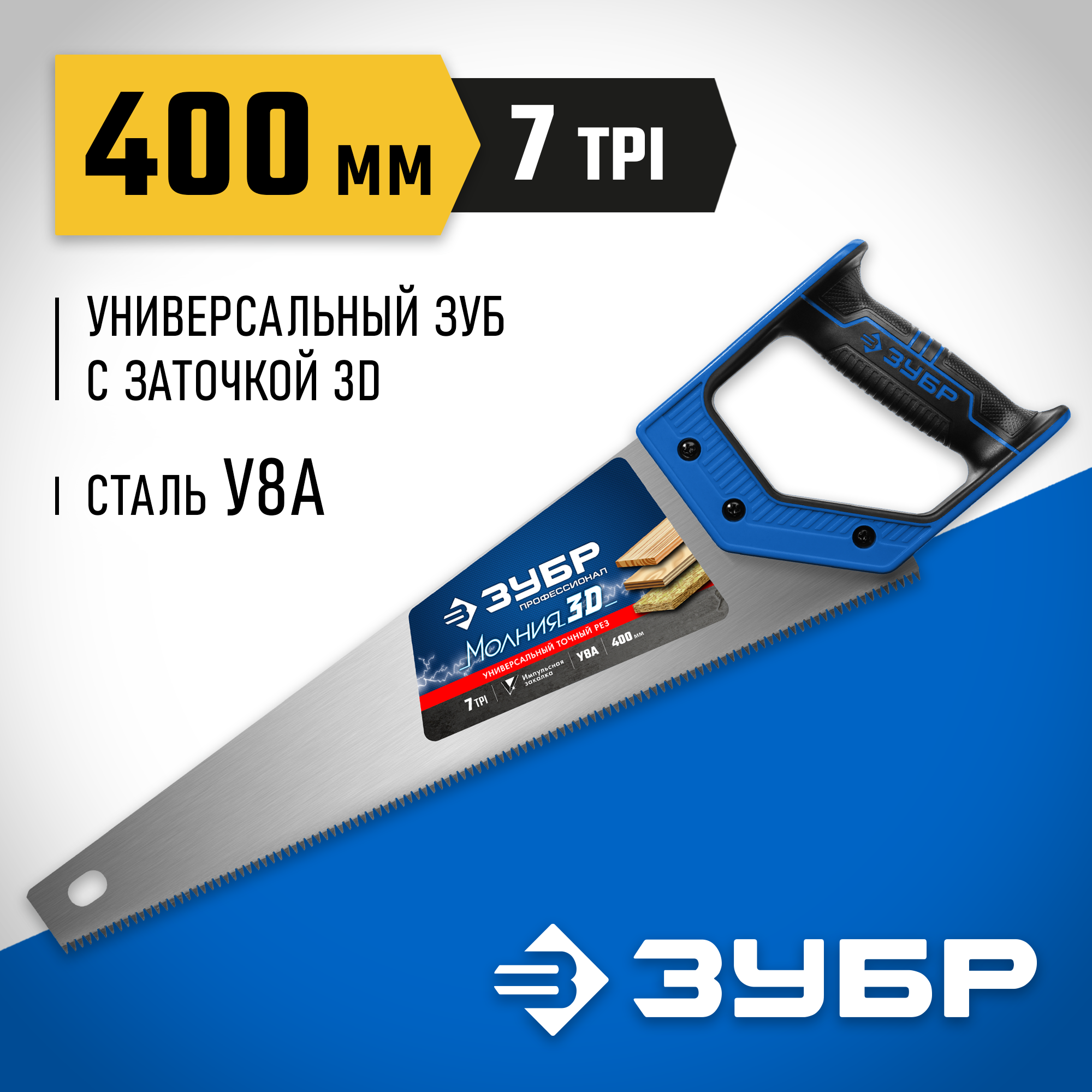 ЗУБР Молния-3D, 400 мм, 7TPI, универсальная ножовка, Профессионал (15077-40)