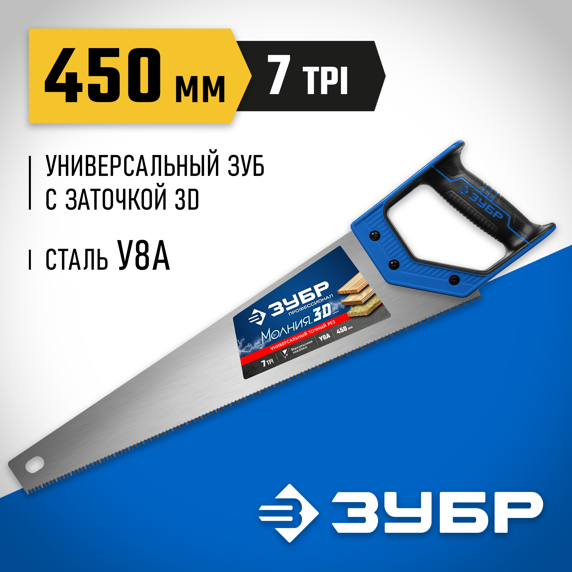 ЗУБР Молния-3D, 450 мм, универсальная ножовка, Профессионал (15077-45)
