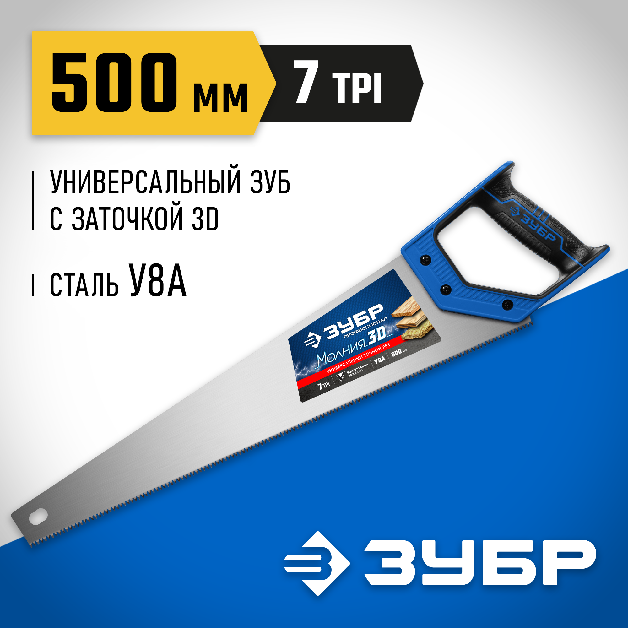 Профессиональная ножовка по дереву «МОЛНИЯ-3D» с крупными прямыми зубьями, остро заточенными с трех сторон, обеспечивает точный рез вдоль и поперек волокон, для средних заготовок из всех видов материалов