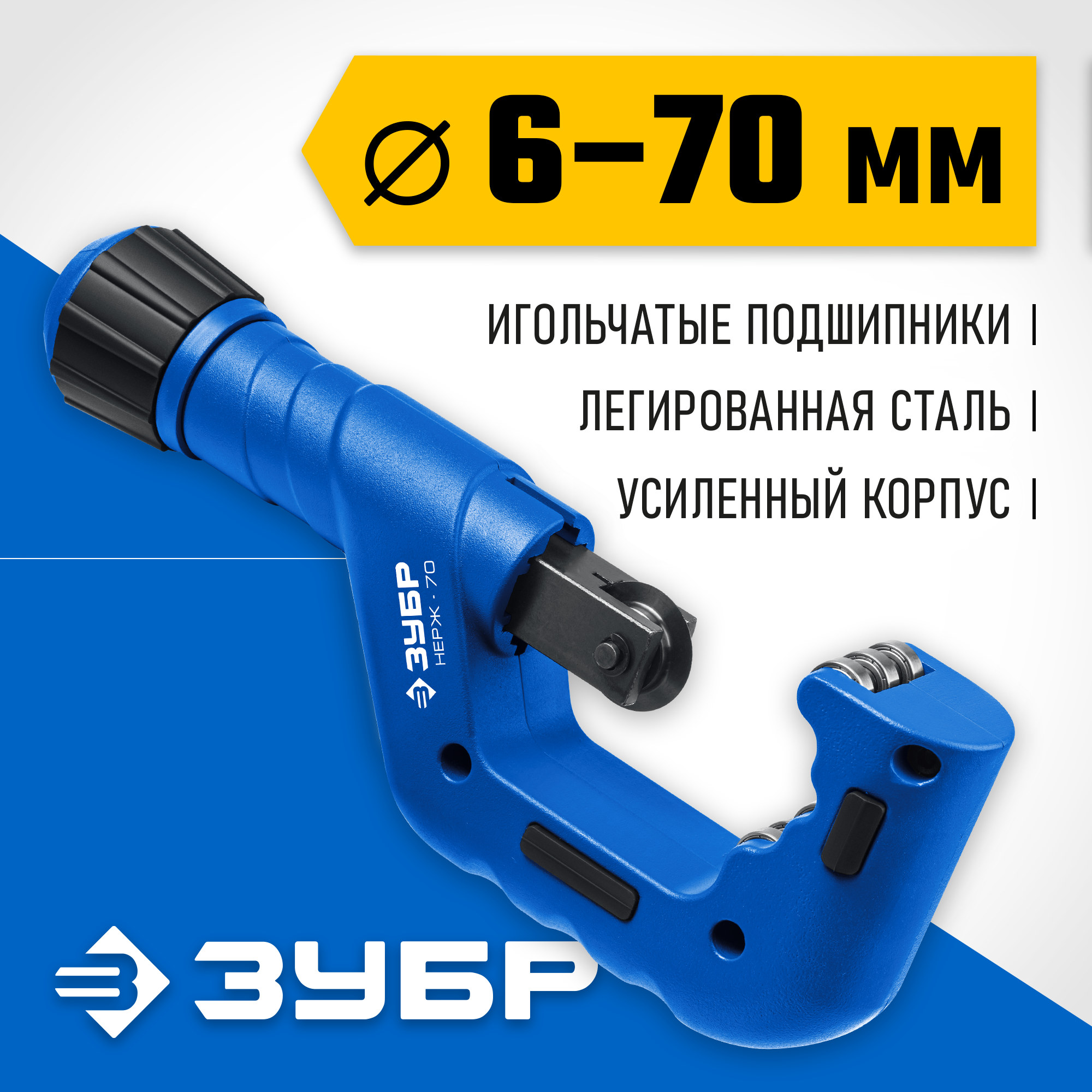 Выбирая труборез ЗУБР Нерж-70, вы получаете надежный и качественный инструмент для работы с трубами из нержавеющей стали, меди, латуни, алюминия, пластика и бронзы.