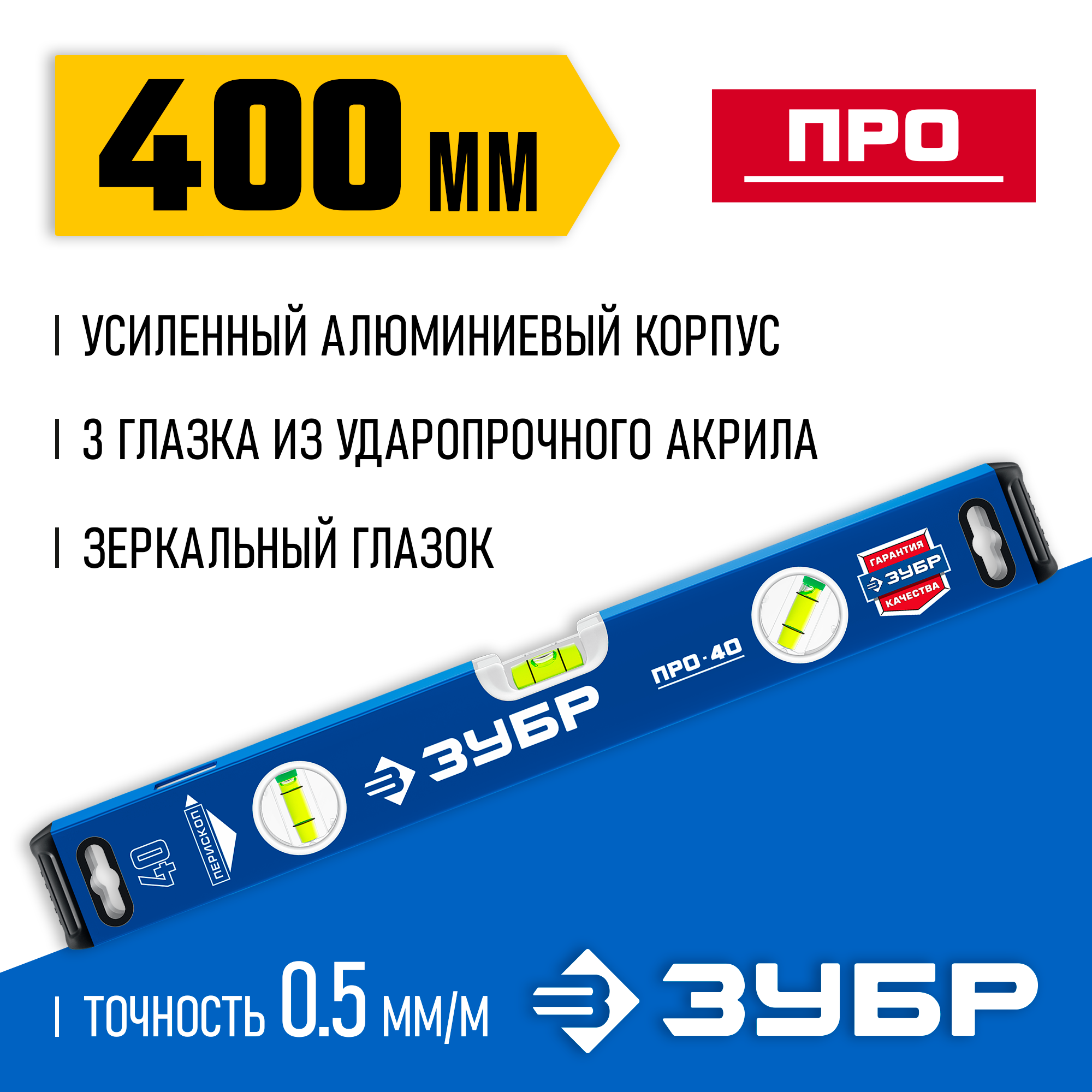 ЗУБР ПРО, 400 мм, уровень с усиленным профилем, Профессионал (34590-040)