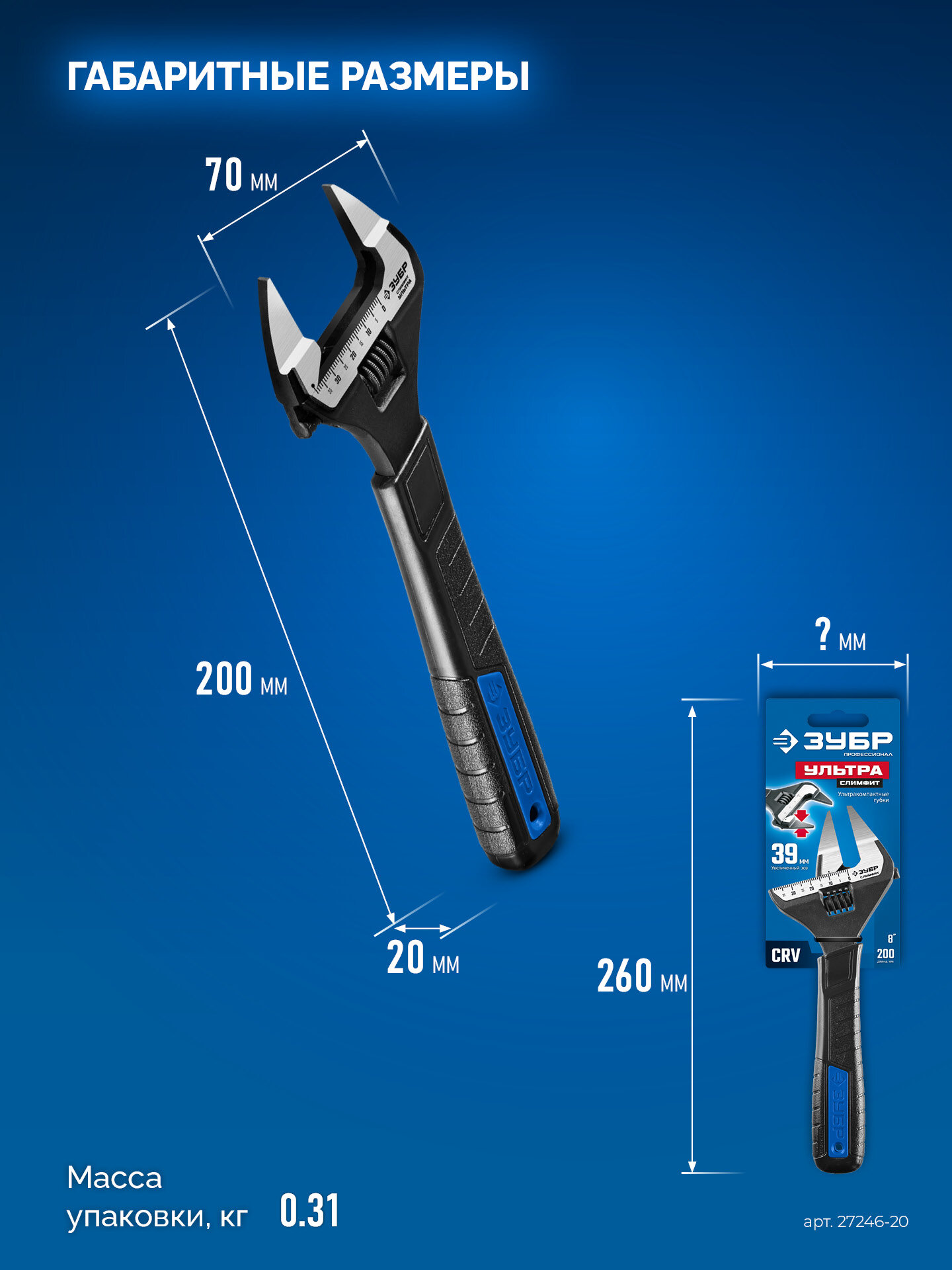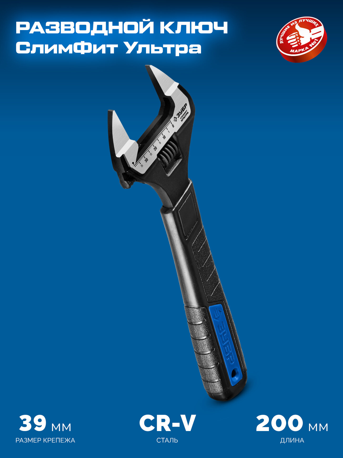 ЗУБР СлимФит Ультра, 200 / 39 мм, разводной ключ, ПРОФЕССИОНАЛ (27246-20)