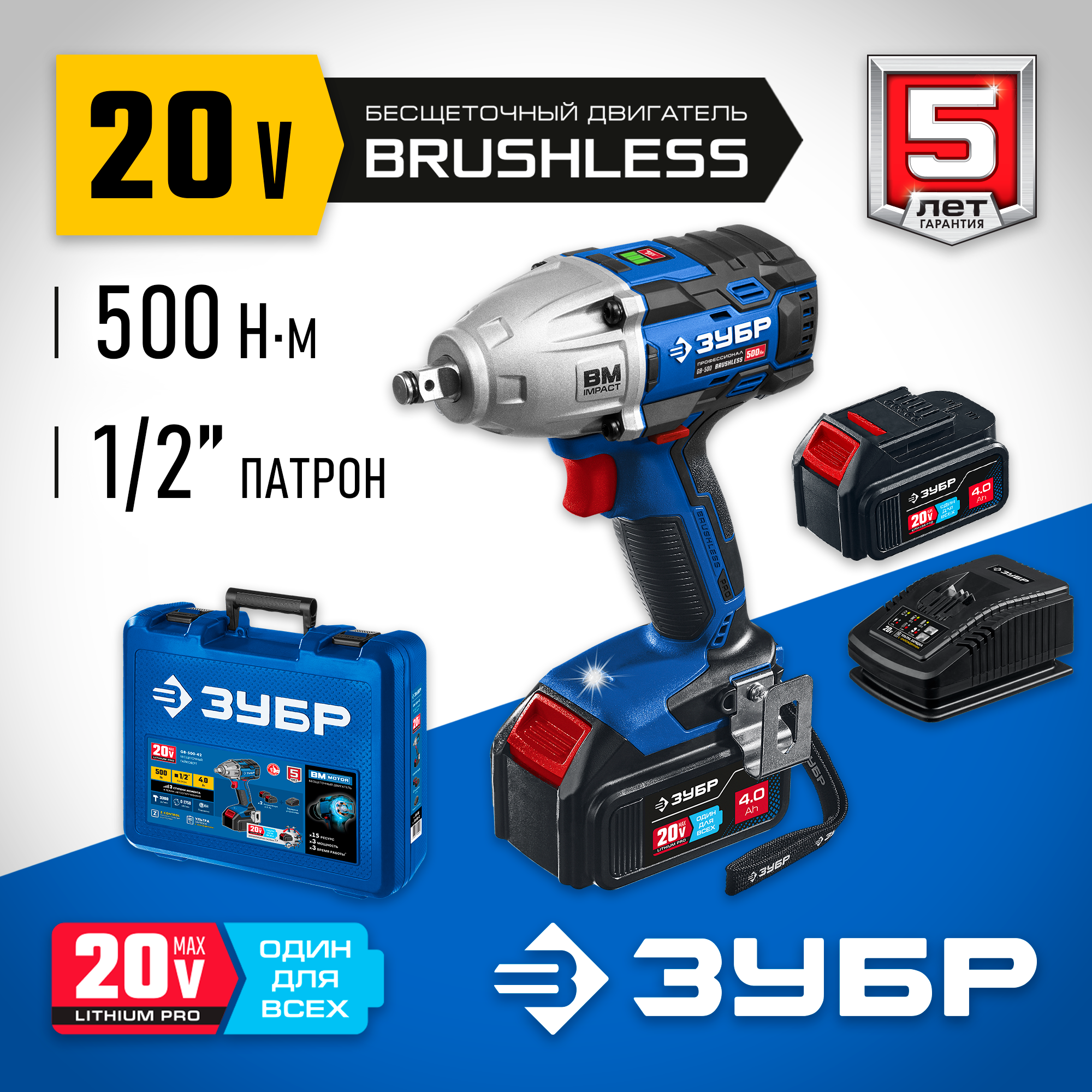 Гайковерт профессионального уровня с BRUSHLESS двигателем высокой эффективности и надежности. Крутящий момент 500 Нм позволяет закручивать крепеж размером до М22. Дополнительный автоматический режим ″срыва″ крепежа упрощает серийную работу. Две емкие батареи и ультрабыстрая зарядка помогают работать практически без перерывов