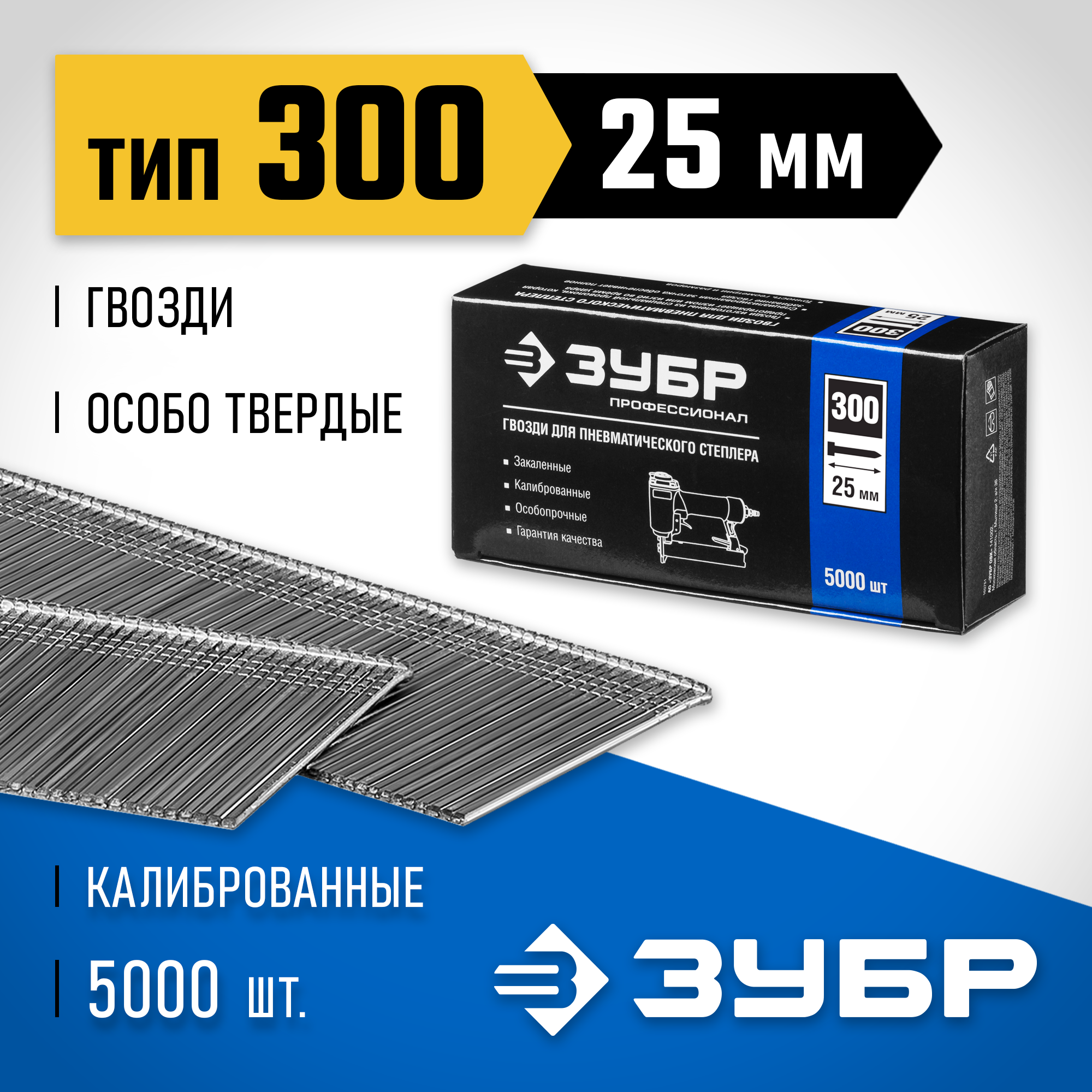 ЗУБР тип 18GA (47/300/F) 25 мм, 5000 шт, гвозди для нейлера, Профессионал (31830-25)