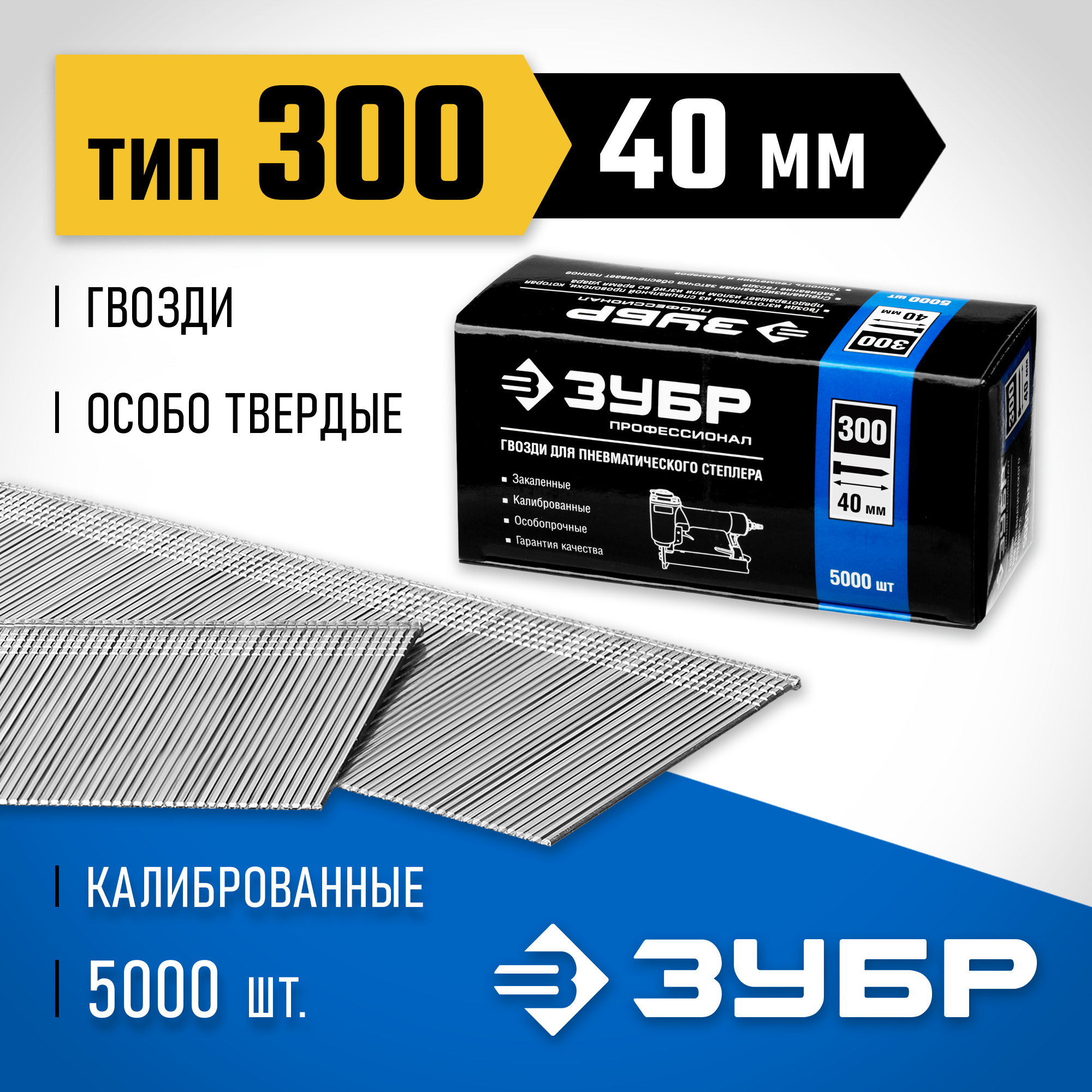 ЗУБР тип 18GA (47/300/F) 40 мм, 5000 шт, гвозди для нейлера, Профессионал (31830-40)
