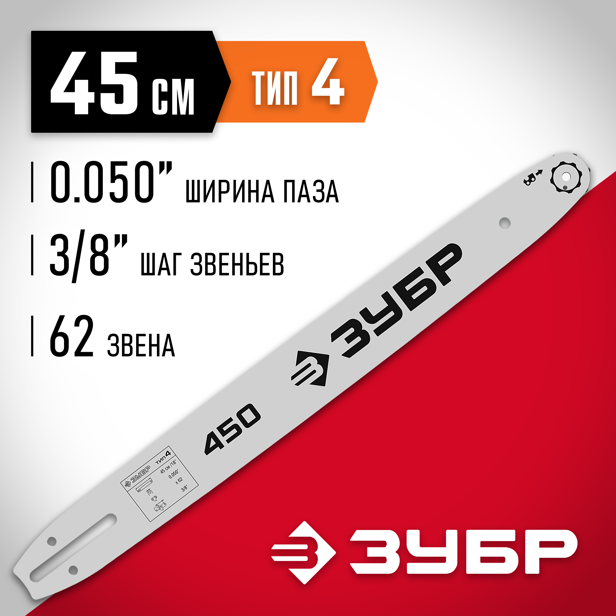 ЗУБР тип 4, шаг 3/8″, паз 1.3 мм, 45 см, шина для электро и бензо пил (70204-45)