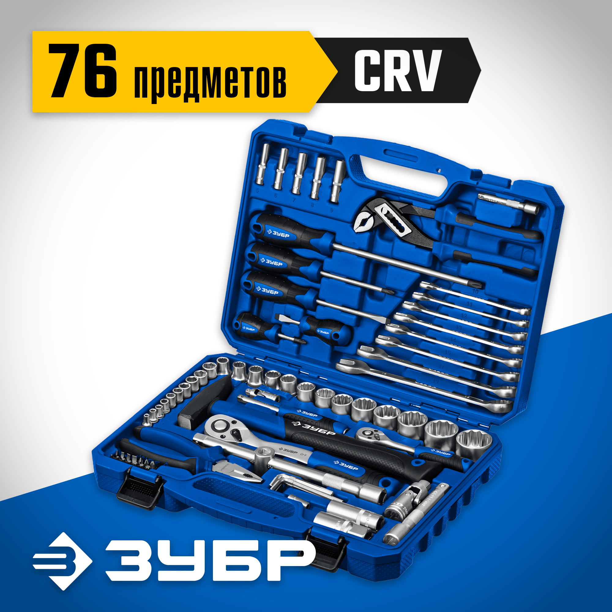 ЗУБР Универсал-76, 76 предм., (1/2″+ 1/4″), универсальный набор инструмента, Профессионал (27670-H76)