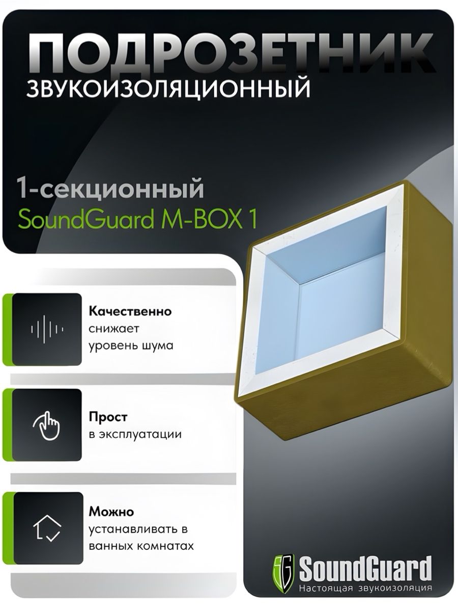 Звукоизоляционный подрозетник 1-секционный SoundGuard M-BOX 1 – идеальное решение для создания комфортного и тихого пространства в вашем доме или офисе. Этот подрозетник изготовлен с учетом современных требований к звукоизоляции и предназначен для использования в стенах, где необходимо уменьшить проникновение шума.